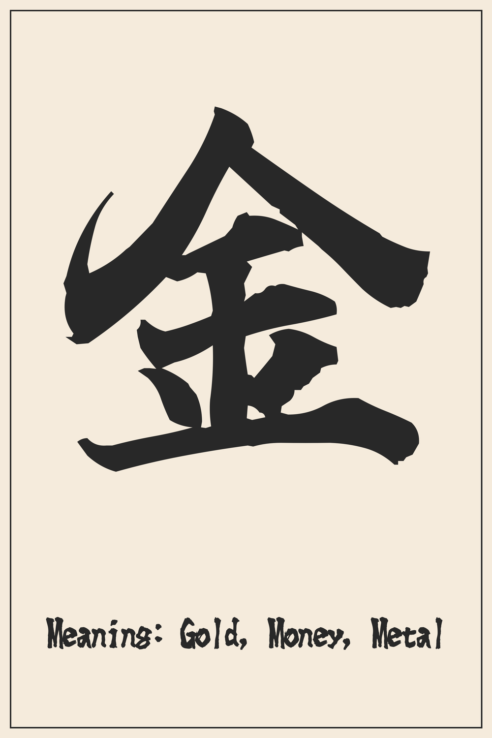 The Kanji 金 embodies the powerful concepts of gold, money, and metal, symbolizing value, prosperity, and endurance. It represents not only material wealth but also the inherent preciousness and strength found in various aspects of life.