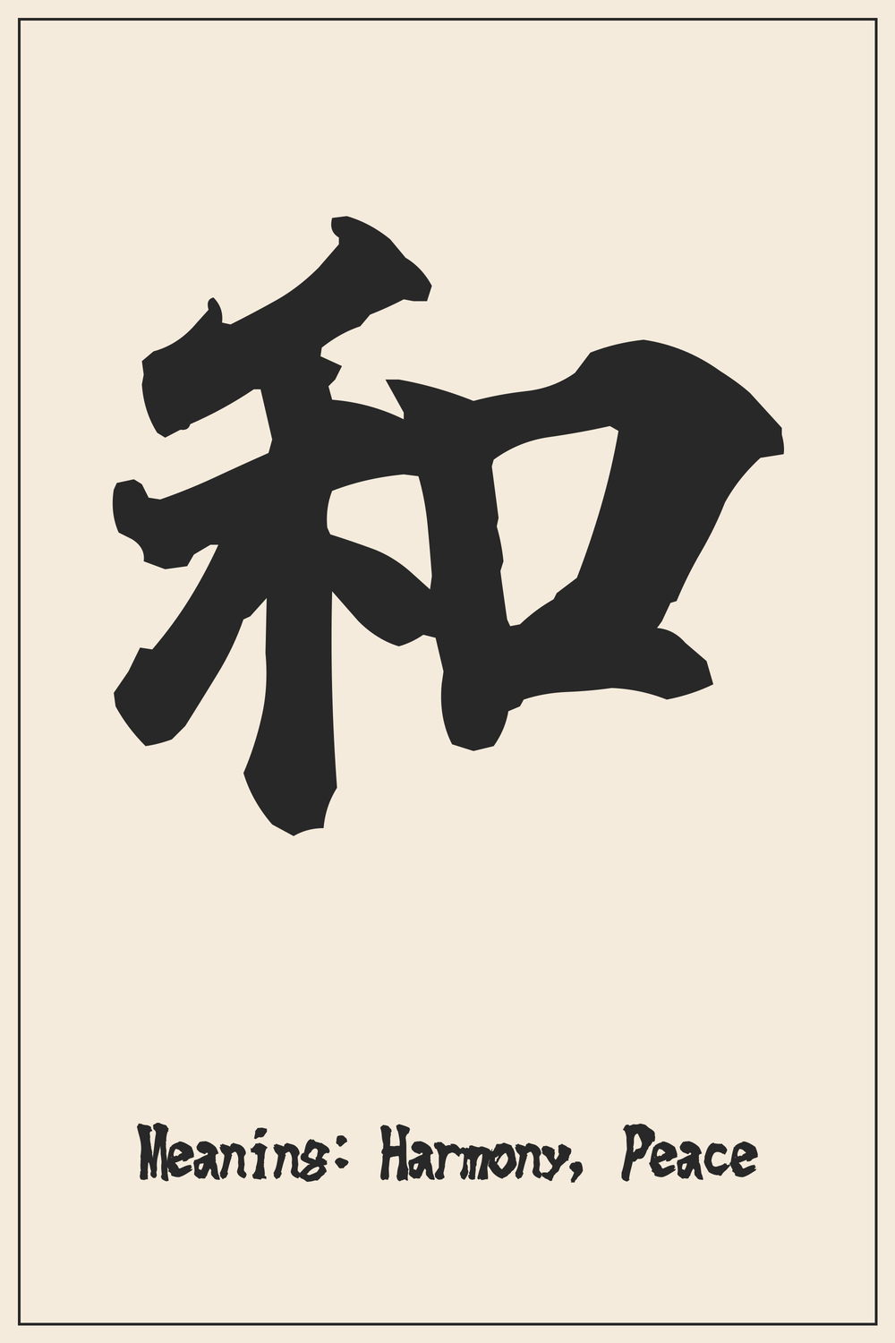 The Kanji 和 encapsulates the profound essence of harmony and peace, embodying a philosophy of serene coexistence. It stands as a timeless symbol of unity, both within oneself and among people.