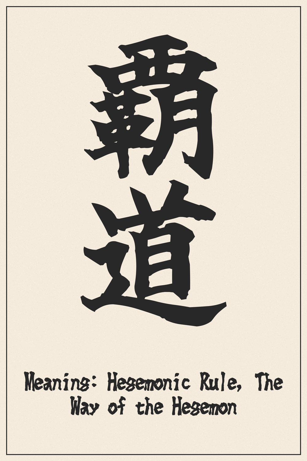 The term 覇道 (Hadō) combines 覇 (ha), meaning ‘hegemon’ or ‘supremacy,’ and 道 (dō), meaning ‘path’ or ‘way.’ Historically, 覇 referred to a powerful feudal lord who, while not necessarily holding imperial authority, commanded great influence and military might over other lords, effectively maintaining order through power.