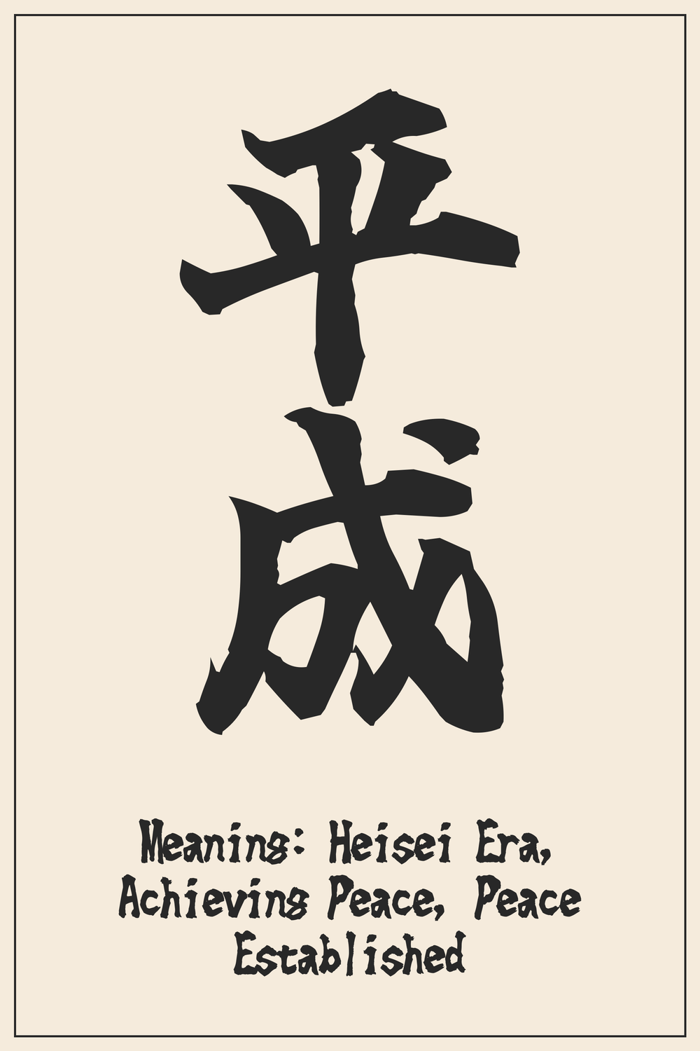 The Kanji 平成 is a powerful symbol of an era defined by a deep-seated aspiration for peace and stability. It conveys the idea of peace being established and maintained, both internally within a nation and externally in the world.