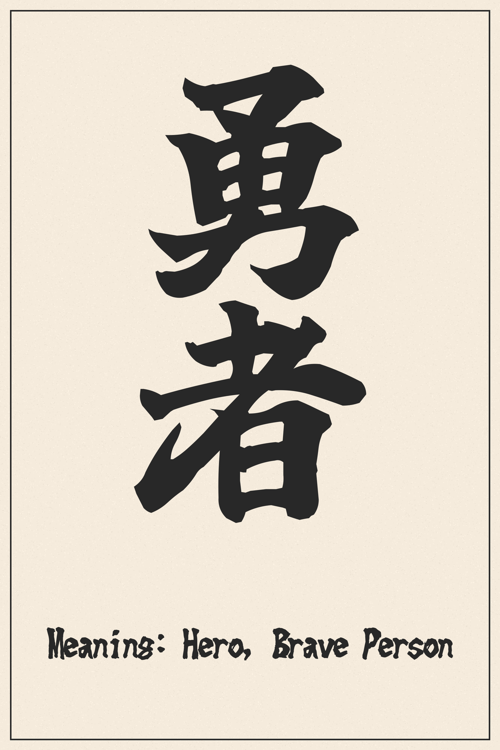 The Kanji compound 勇者 (Yuusha) embodies the profound concept of heroism, symbolizing a person who faces adversity with unwavering courage. It resonates deeply with tales of valor and strength, inspiring action and fortitude.