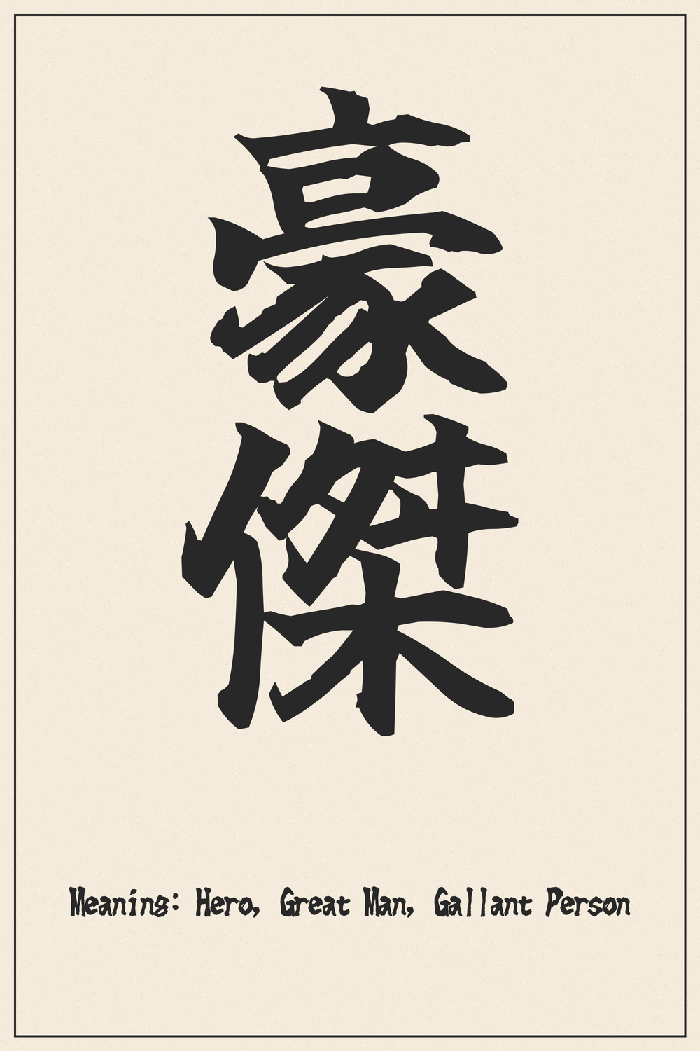 The Kanji ‘่ฑชๅ’ profoundly symbolizes a hero, a person of exceptional strength, courage, and outstanding ability. It represents an individual who inspires awe and commands respect through their actions and character.