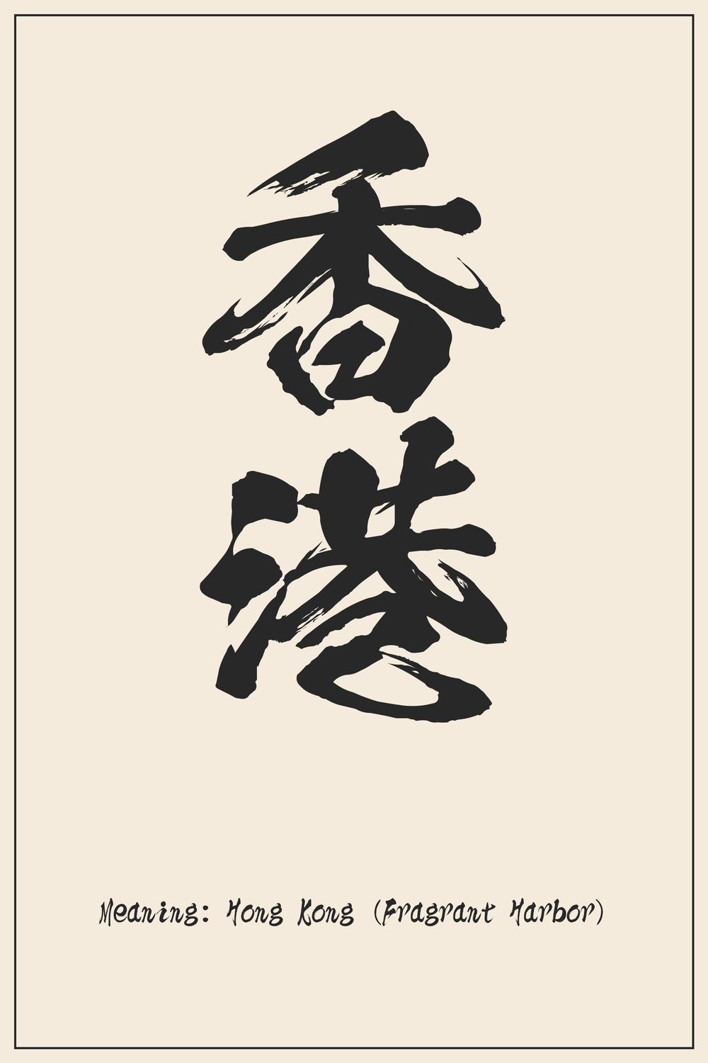 “香港” represents the vibrant metropolis of Hong Kong, a name steeped in both history and poetic meaning. This Kanji compound beautifully encapsulates the essence of its renowned harbor and rich cultural heritage.