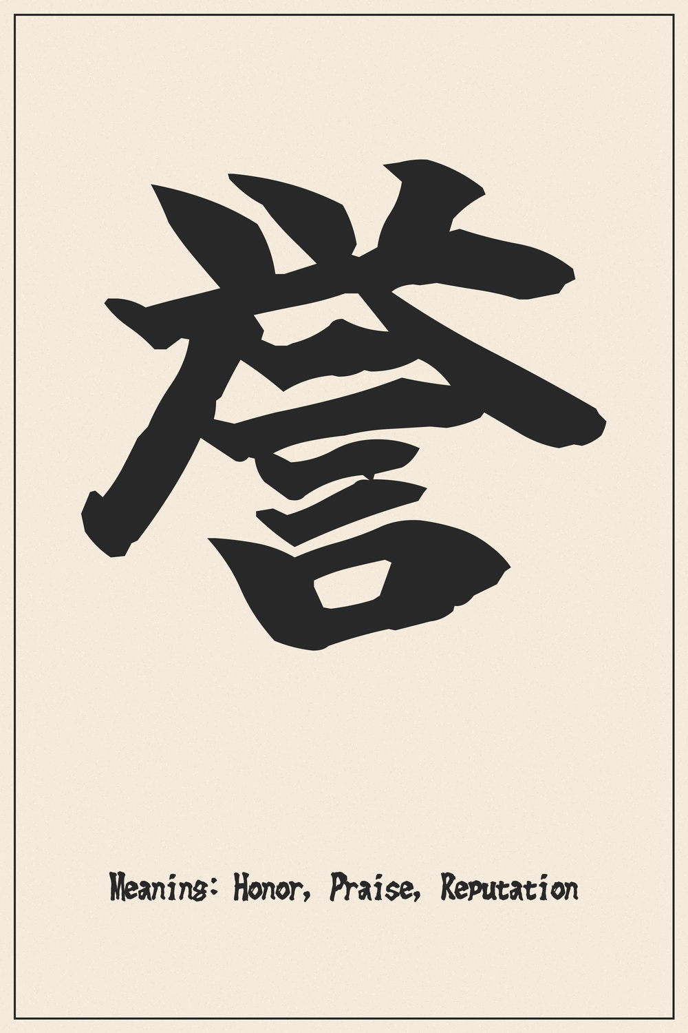 The Kanji 誉 encapsulates the profound concepts of honor, praise, and reputation, signifying the deep respect and recognition earned through a life of integrity and significant achievements. It represents not just external validation but also an internal commitment to values.