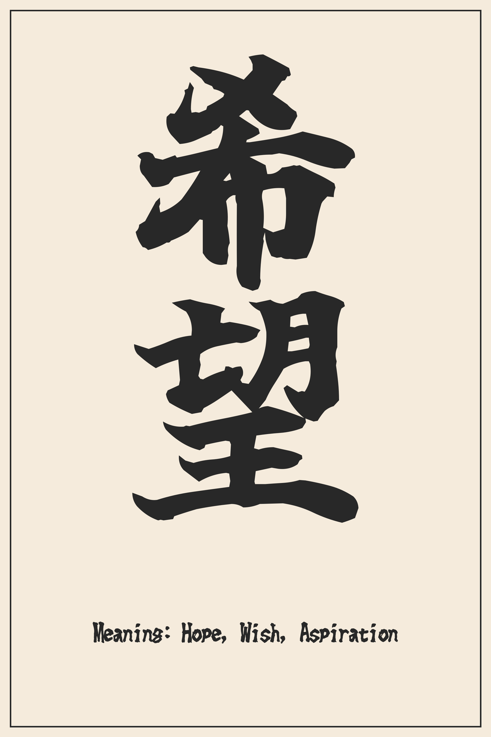 Embrace the deep meaning of hope, allowing this elegant Kanji to be a source of inspiration and a beautiful, meaningful statement etched onto your journey.