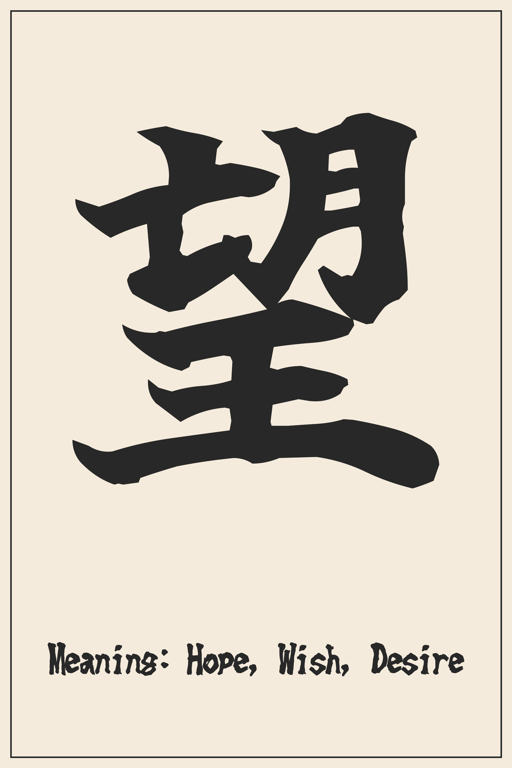 The Kanji ‘望’ encapsulates the profound human sentiment of hope and aspiration. It represents looking forward, desiring a better future, and holding onto a vision.