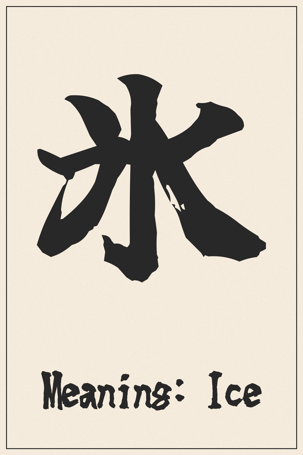 The Kanji ๆฐท captures the essence of frozen water, symbolizing purity, resilience, and the transient beauty of winter. It embodies both stillness and formidable power.