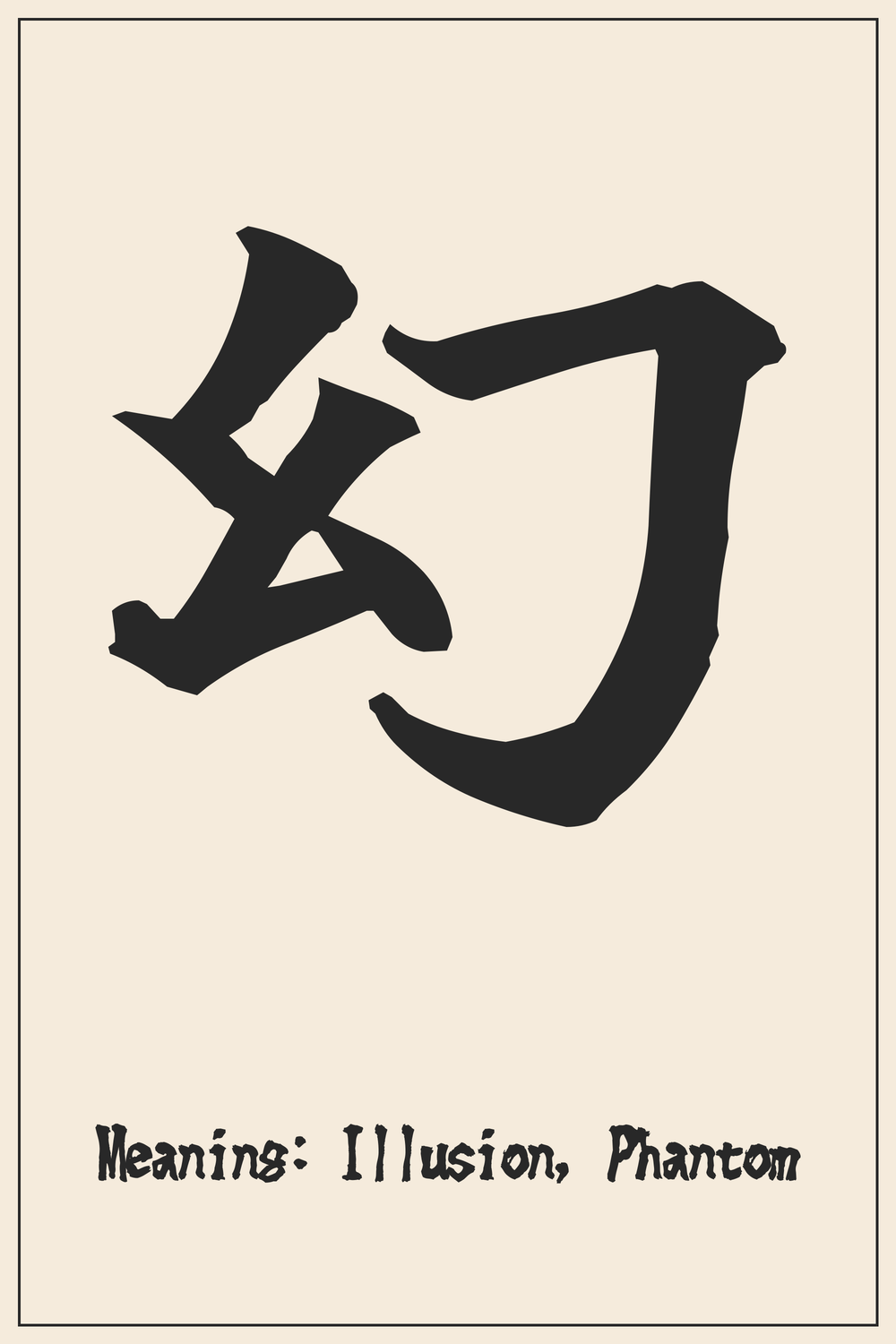 Culturally, 幻 resonates deeply in Japanese aesthetics and philosophy, embodying the transient beauty of existence and the illusory nature of the world. It appears in literature, art, and even martial arts to describe techniques that deceive the eye, representing anything from a fleeting dream to a magical apparition.