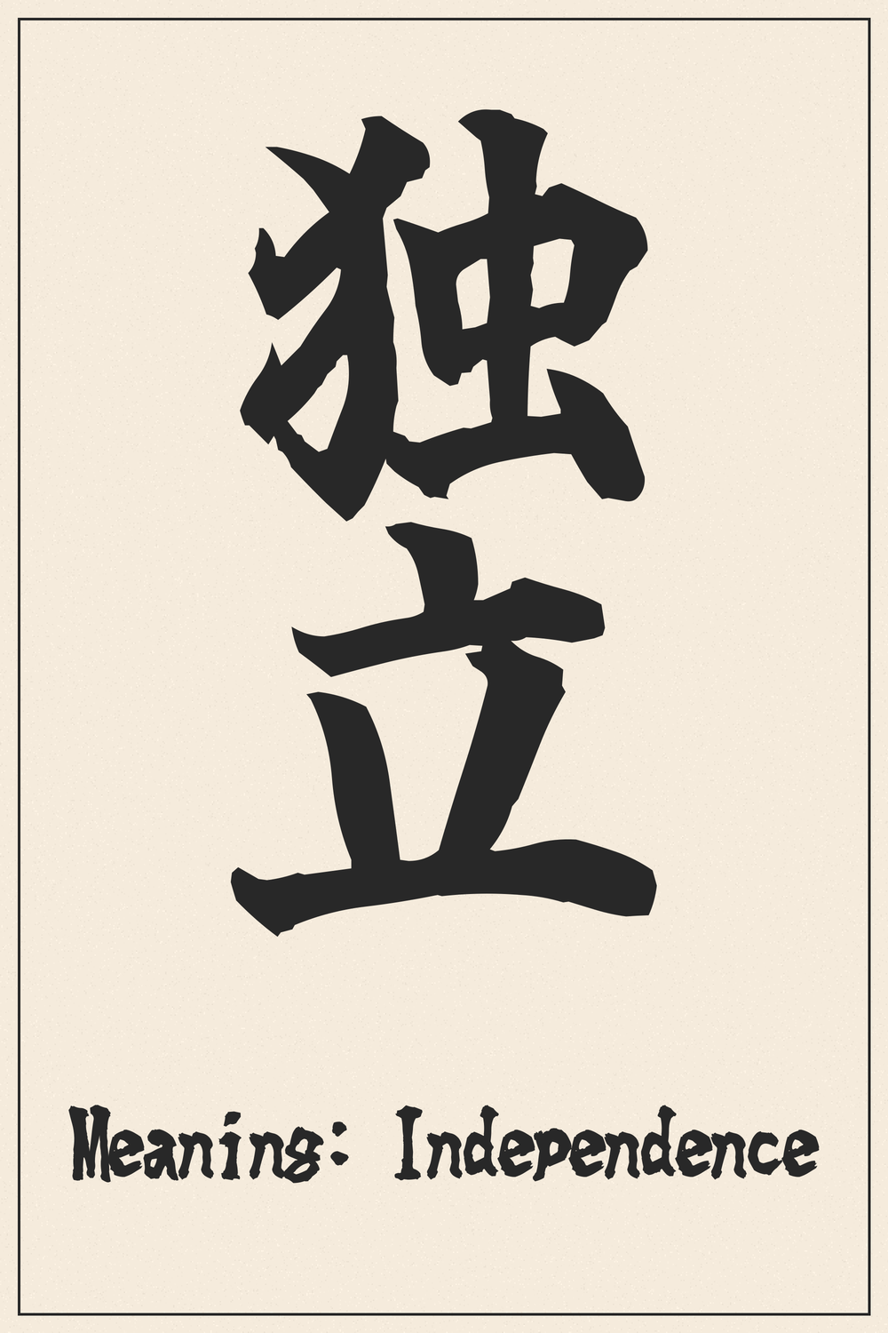 独立の漢字は、自立と自己の力を象徴しています。他者に依存せず、自分の道を歩む勇気を持つことの美しさを表現しています。