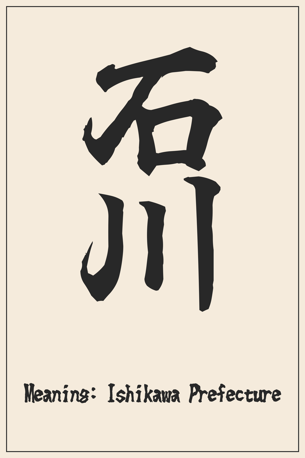 The character ‘Ishikawa’ is composed of two distinct Kanji, each contributing to its geographical and cultural significance.