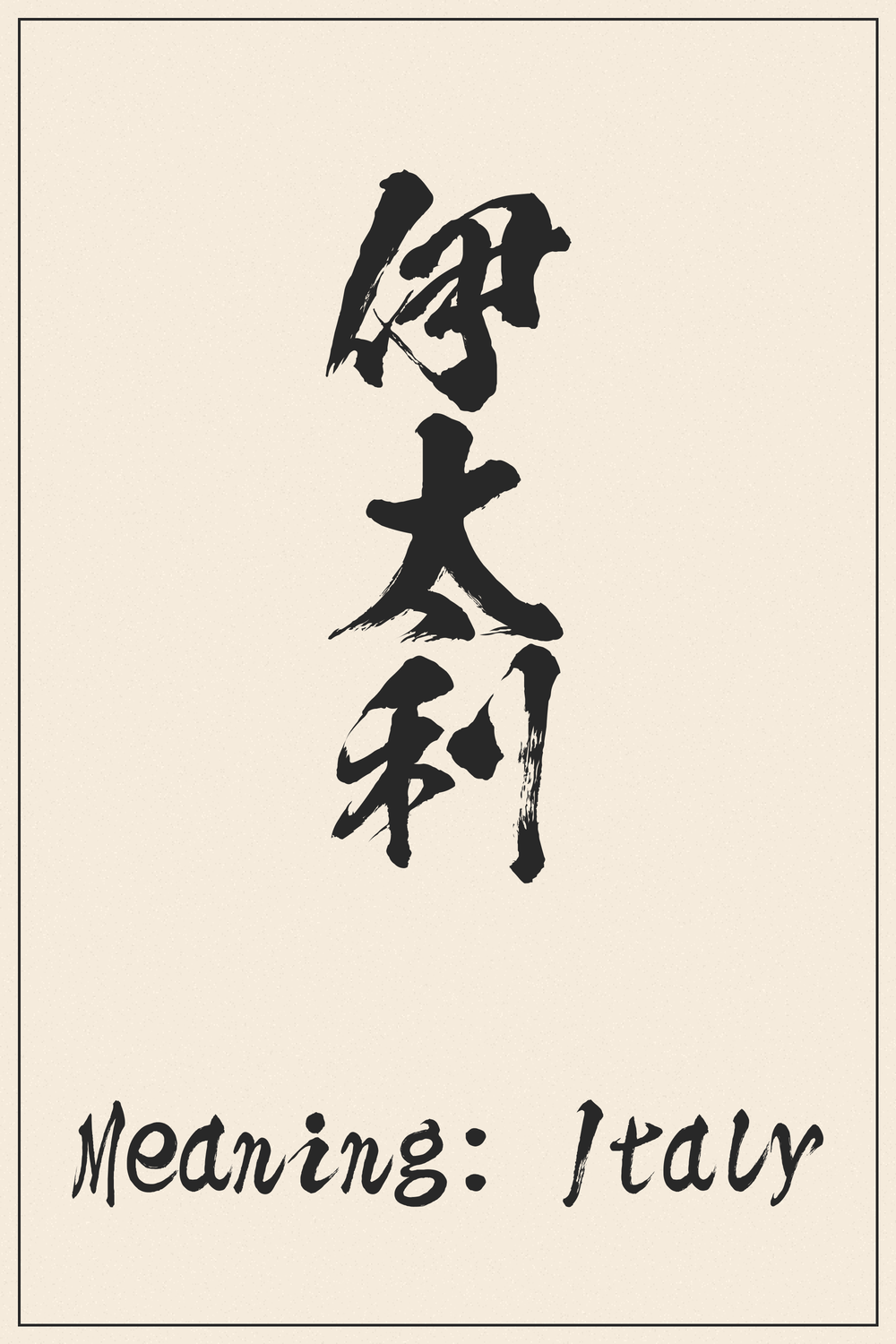 Unlike many Kanji that carry deep symbolic weight, 伊太利 is a straightforward linguistic adaptation. It showcases the Japanese language’s ability to integrate foreign concepts phonetically, allowing for clear communication while maintaining a visual link to traditional script.