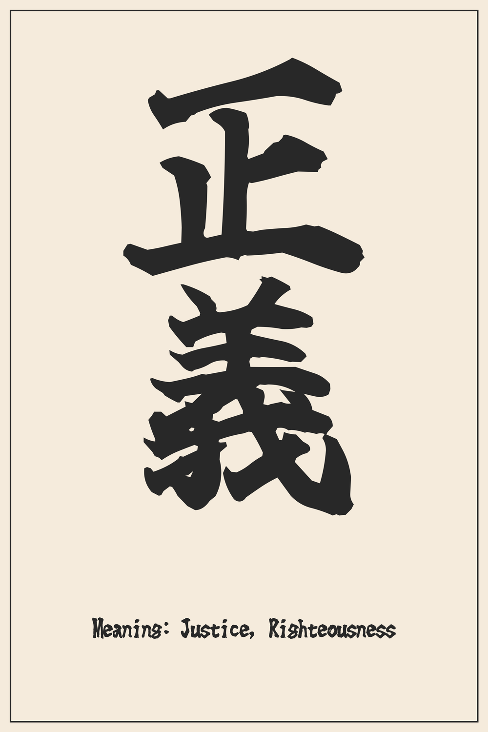 The compound “正義” is composed of two powerful kanji, each contributing to its profound meaning.