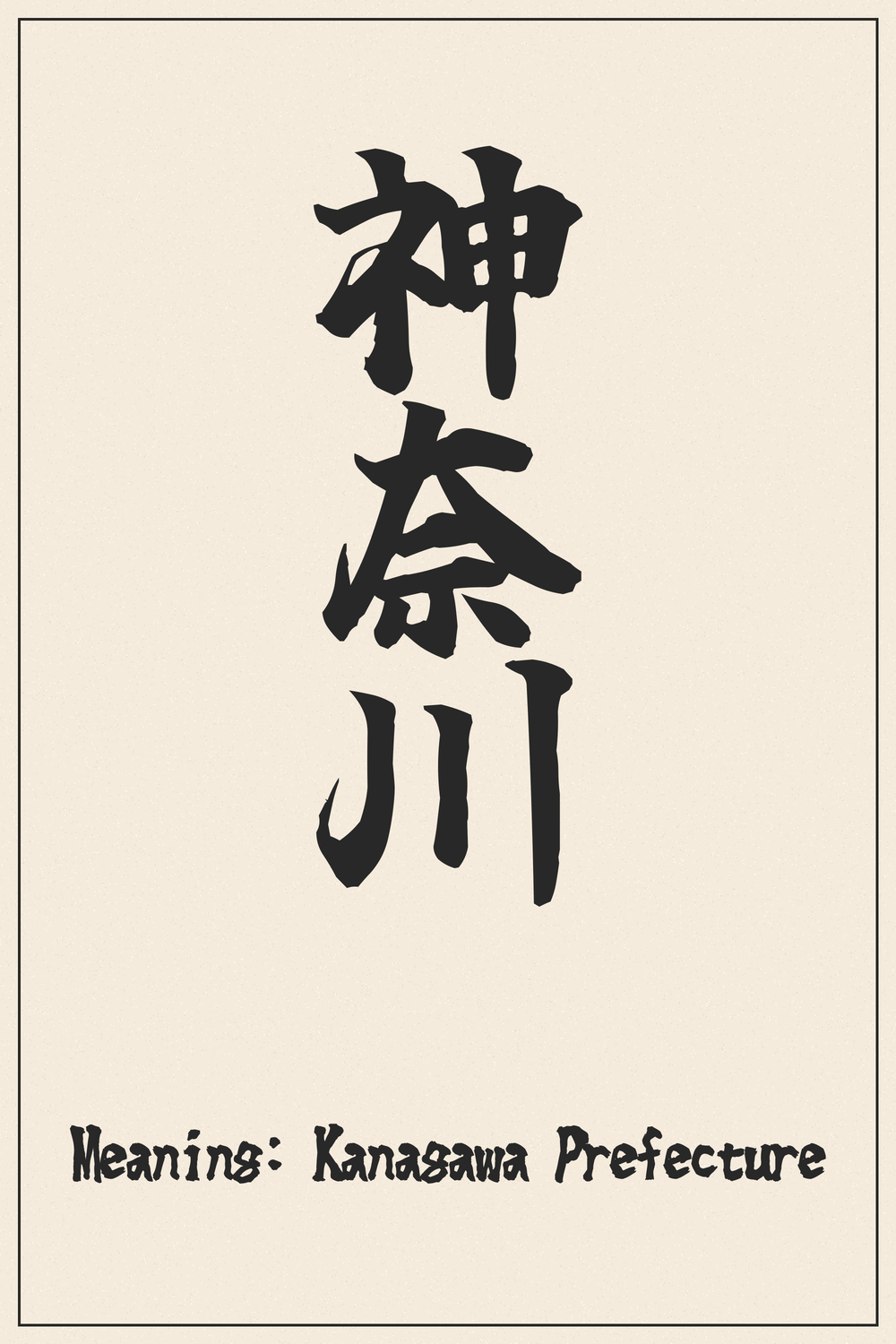 The name “Kanagawa” is derived from the place name written with these three kanji. 神 (kami) means “god” or “deity,” often associated with sacred places. 奈 (na) is a phonetic character, frequently used in ancient Japanese place names for its sound rather than its direct meaning. 川 (kawa) simply means “river.” Historically, it refers to a specific river or waterway.