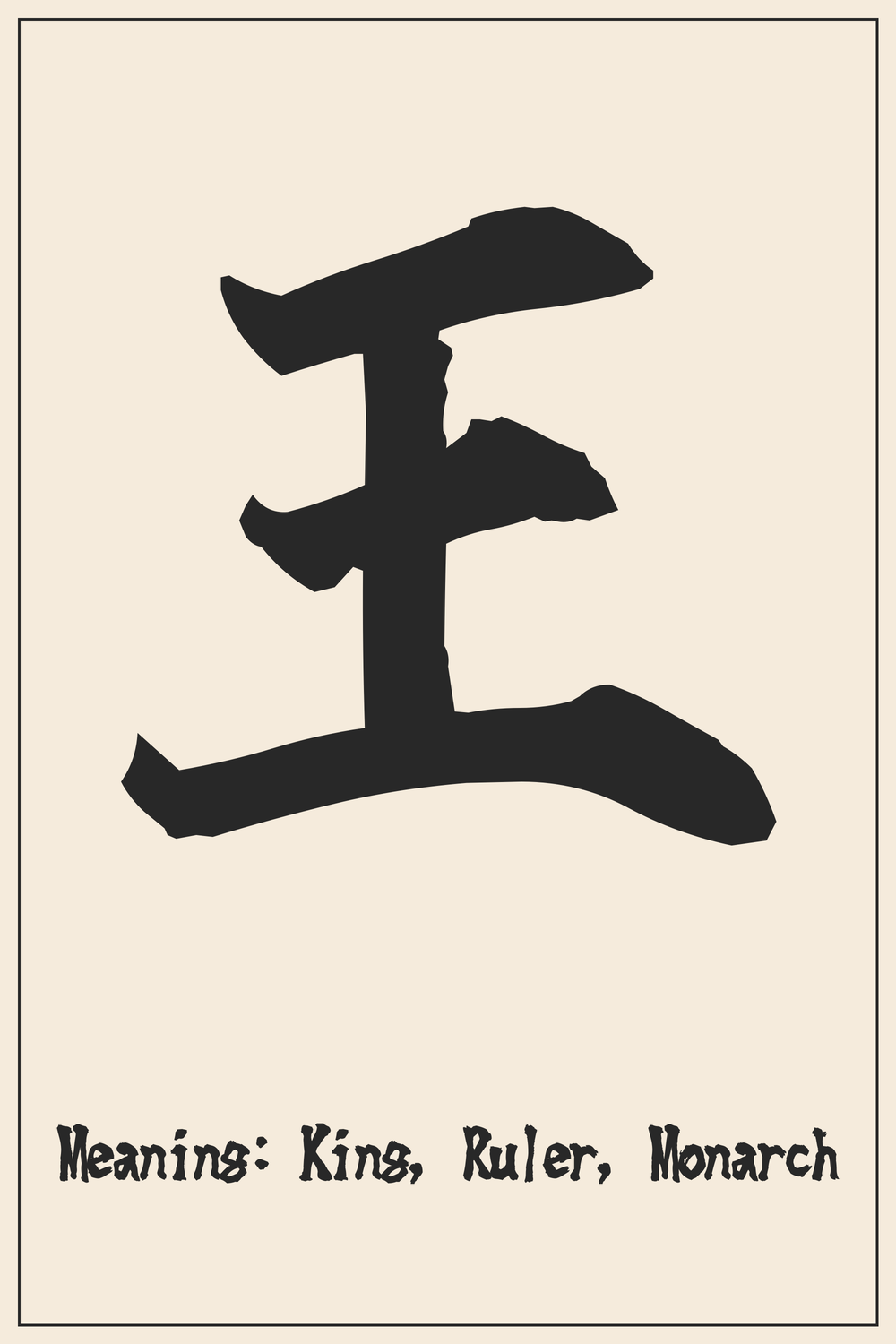 The Kanji 王 embodies ultimate power and leadership, symbolizing one who governs and unites. It’s a character that speaks to destiny and the profound responsibility of ruling.