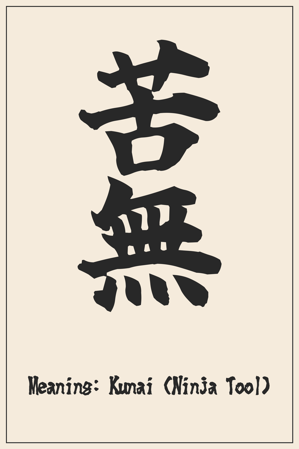 The word ‘Kunai’ is an example of ‘ateji,’ where Kanji are used phonetically rather than for their literal meaning. While the individual characters ‘苦’ and ‘無’ do not semantically form ‘kunai’ as a tool, understanding their core meanings offers additional depth.