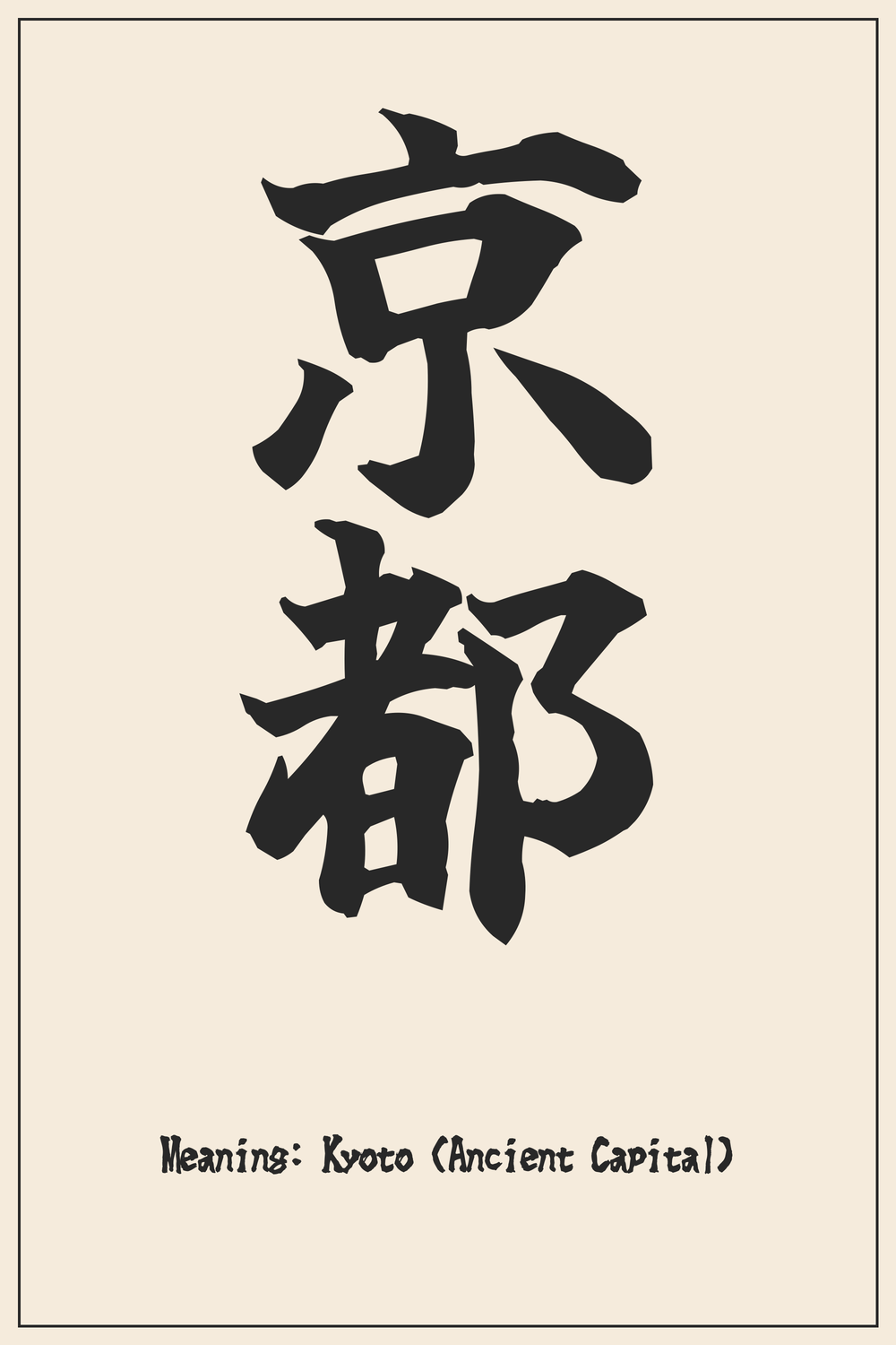 The compound character 京都 is formed by two kanji, each contributing to its profound meaning as the ‘capital city’.