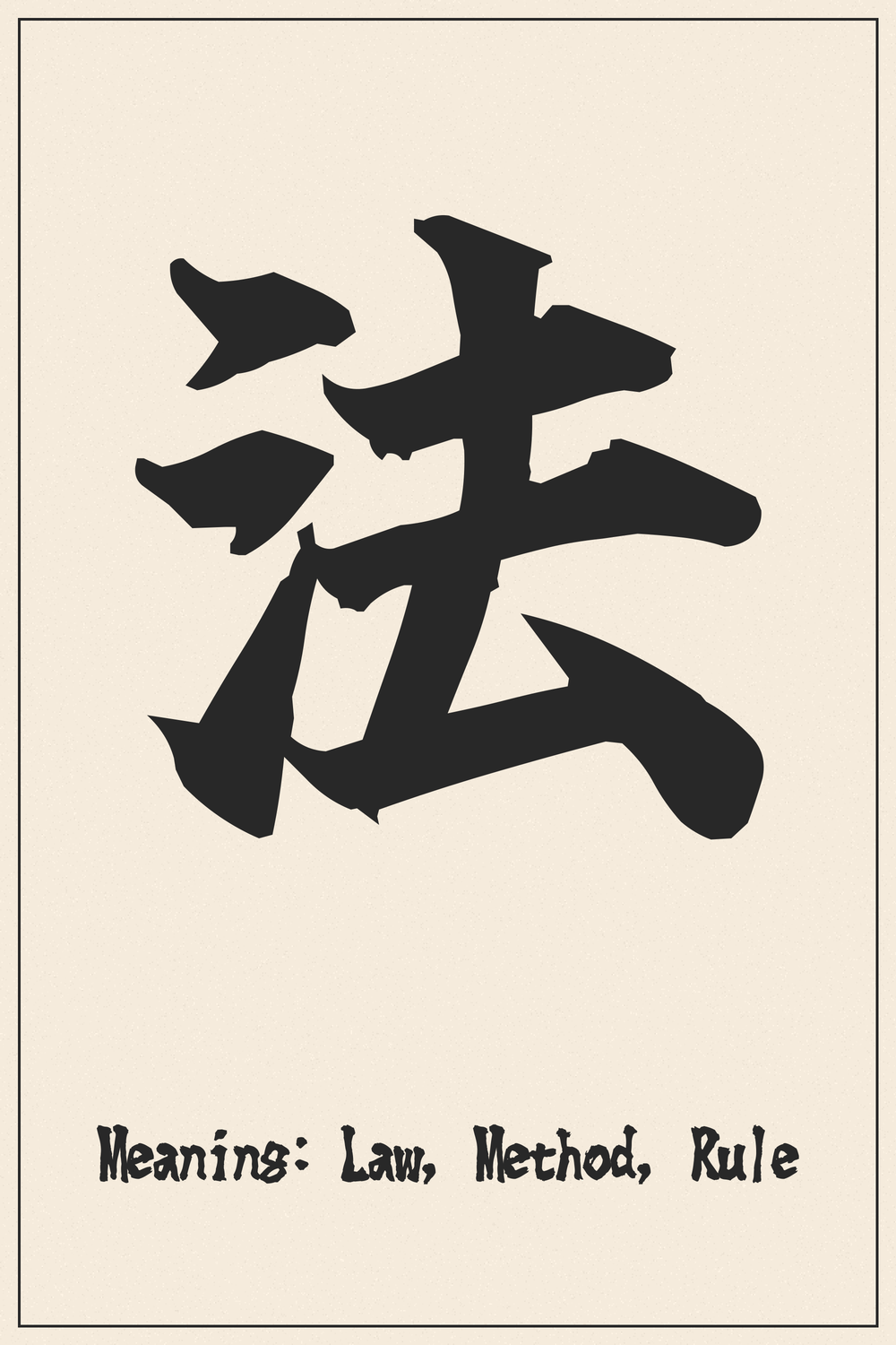The Kanji 法 (hō) has a rich etymological background. Its ancient form depicted water flowing away from a mythical beast called 獬豸 (xièzhì), which was believed to have the power to discern right from wrong and punish the guilty. The character thus originally symbolized the removal of injustice through divine judgment.