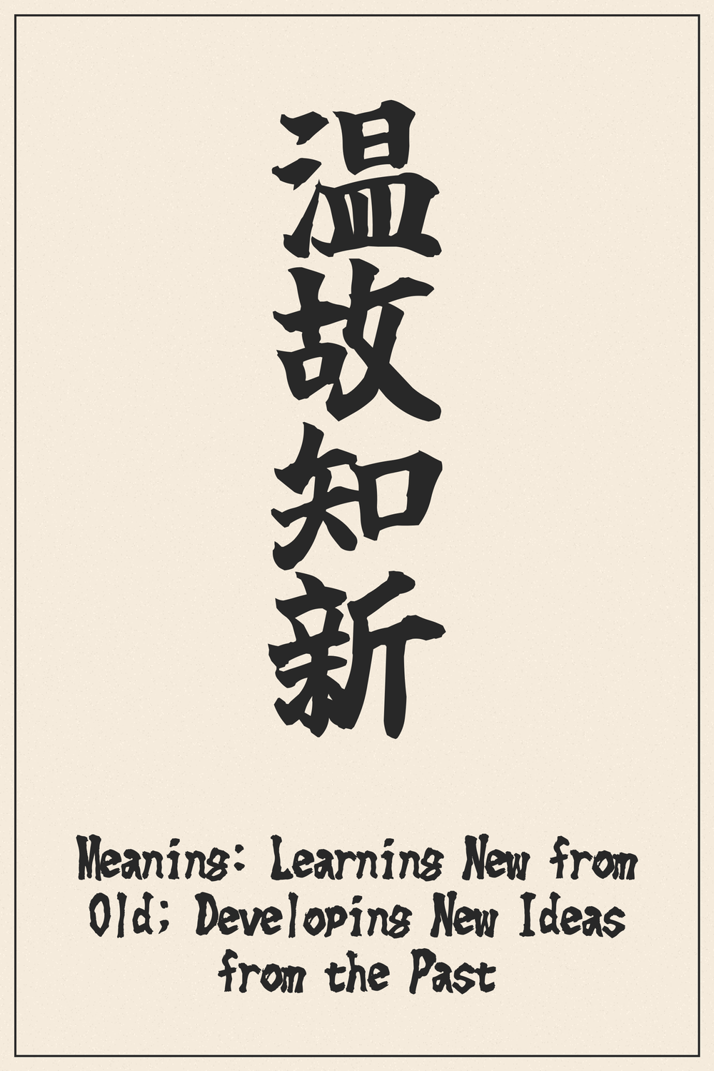 The idiom ‘Onko Chishin’ originates from the Analects of Confucius (論語, Lúnyǔ), specifically from the passage “温故而知新、可以為師矣” (If a man keeps cherishing his old knowledge, so as continually to be acquiring new, he may be a teacher of others). It emphasizes that true mastery and leadership come from a continuous process of reviewing the past and using that understanding to innovate.