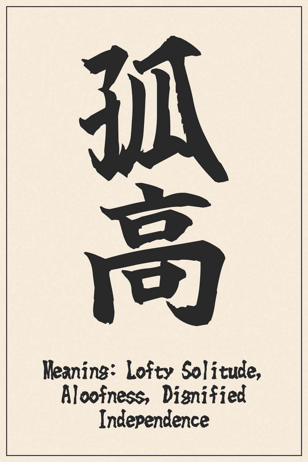 The compound ‘孤高’ is formed by two characters, each contributing to its profound meaning.