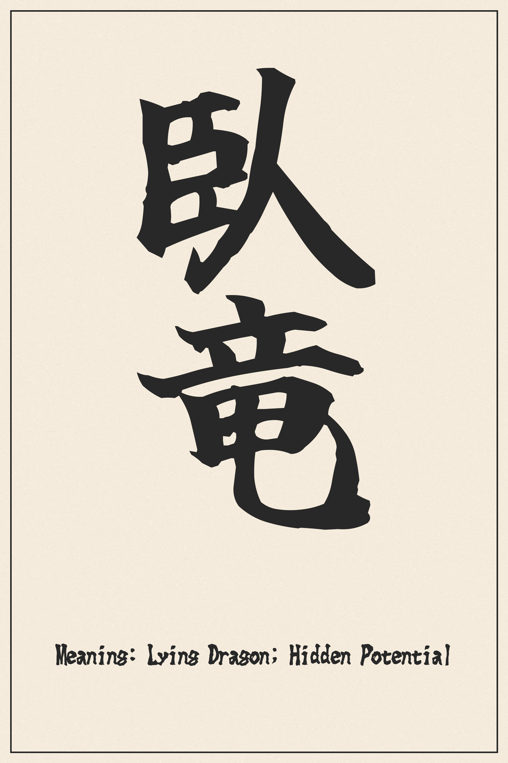 The Kanji 臥竜 offers a profound message of untapped potential and the quiet strength that precedes great achievement. It speaks to the journey of a hidden genius, biding their time before ascending to their rightful place.