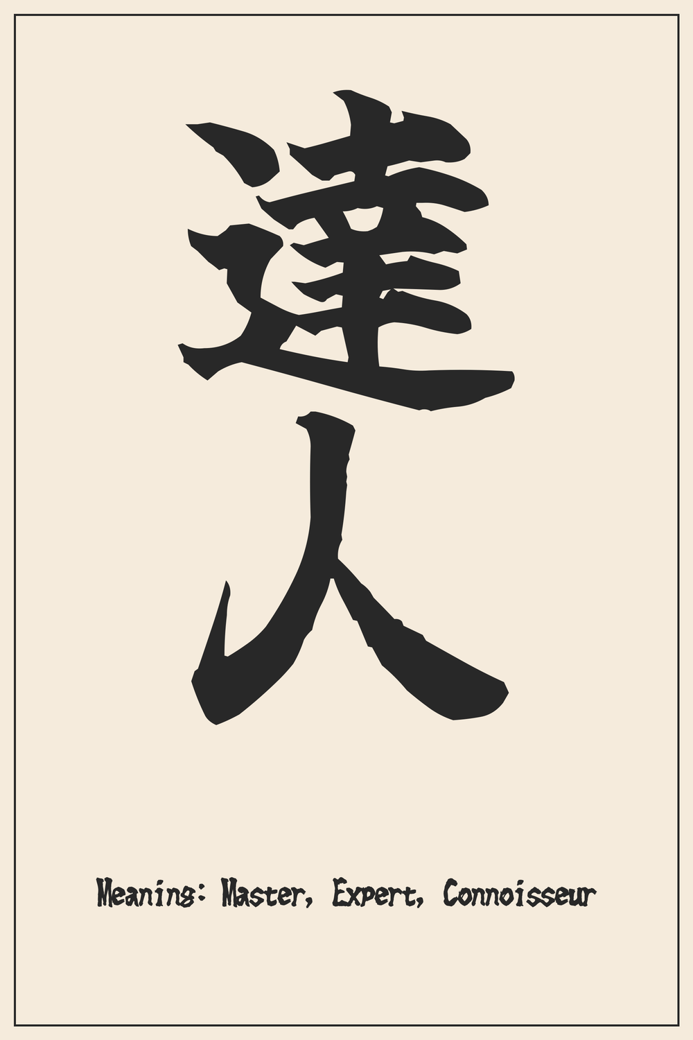 The compound ‘達人’ is formed from two individual Kanji, each contributing to its profound meaning of mastery.