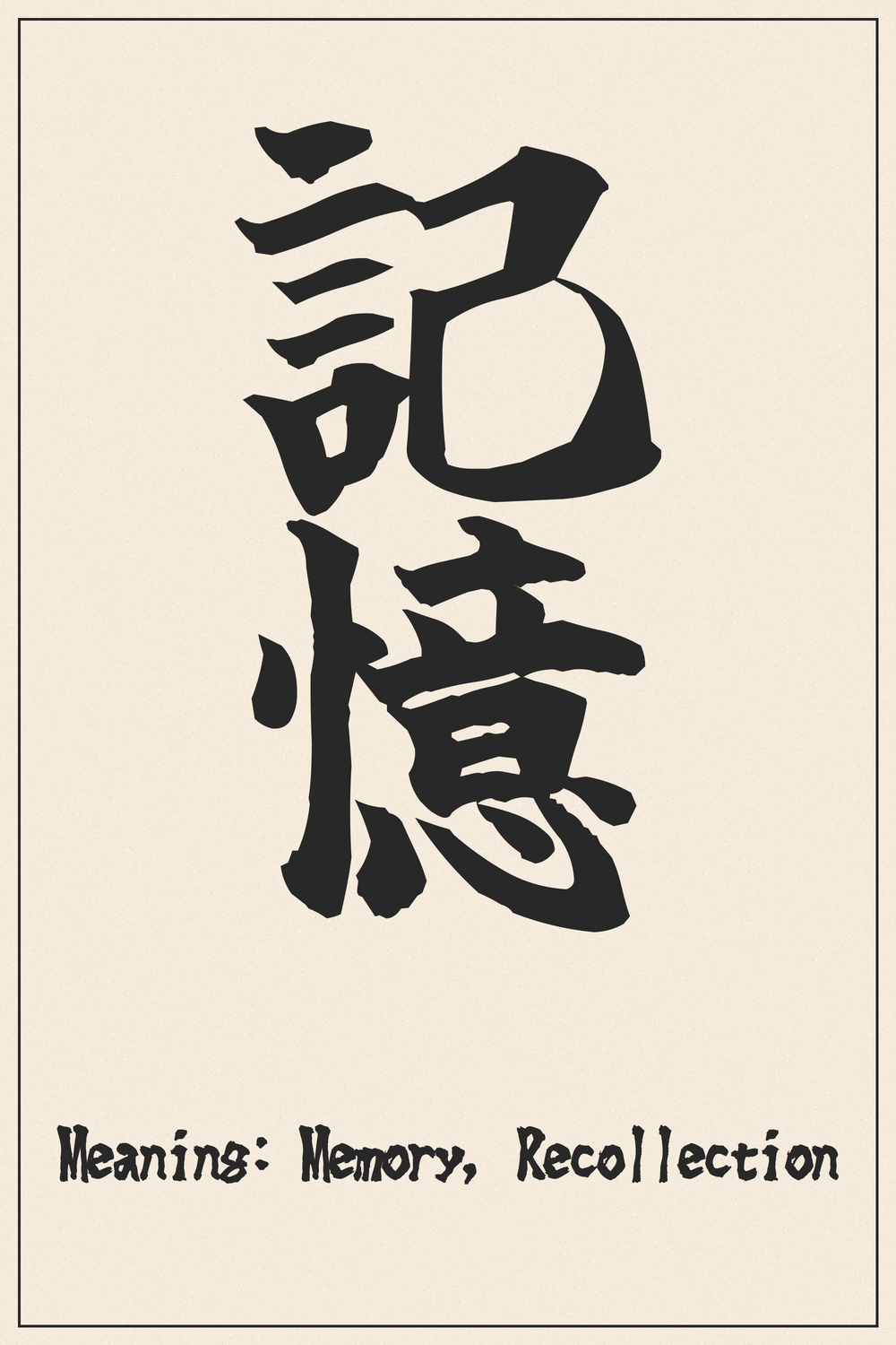The Kanji 記憶 (Kioku) beautifully articulates the complex and vital role of memory in our lives. It stands as a testament to the past, a guide for the present, and a foundation for the future, encompassing both the recording of events and the heartfelt act of remembrance.