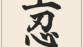 Meaning: Endure, Bear, Conceal, Ninja. This character is composed of 刃 (ha), meaning ‘blade’ or ‘edge’, placed above 心 (kokoro), meaning ‘heart’ or ‘mind’. It powerfully illustrates the concept of a ‘blade on the heart,’ signifying the profound internal strength required to endure hardship, suppress emotions, or act with stealth.