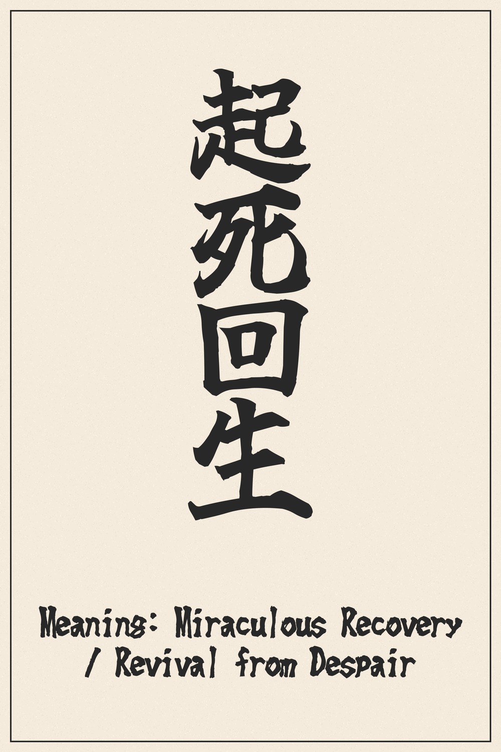Embodying the spirit of the ultimate comeback, 起死回生 (Kishikaisei) is a profound Japanese idiom. It signifies the extraordinary act of turning a desperate situation into a miraculous recovery, a powerful symbol of resilience and hope.
