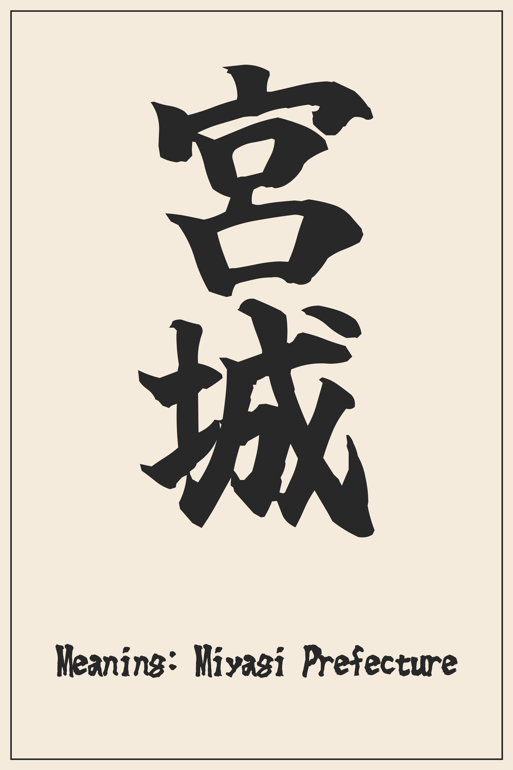 Miyagi, a name that evokes the scenic beauty of Japan’s Tohoku region and its rich history. This kanji represents a place of both natural wonder and cultural significance.