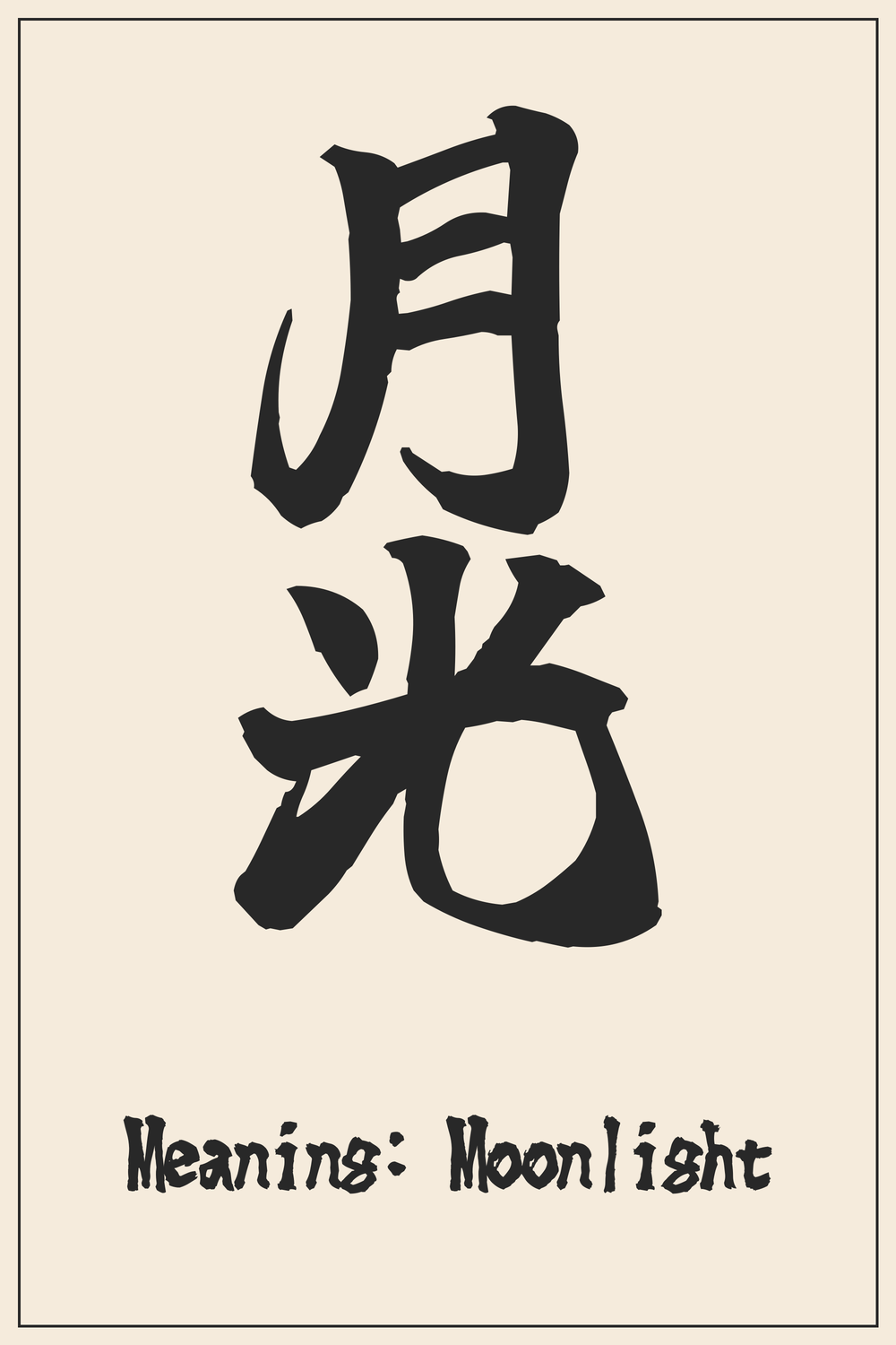 The Kanji ๆๅ (Gekkou) beautifully encapsulates the quiet majesty of moonlight, a phenomenon revered for its calming influence and profound symbolism. It speaks to the hidden beauty of the night and the gentle guidance it offers, reflecting a connection to nature’s serene power.