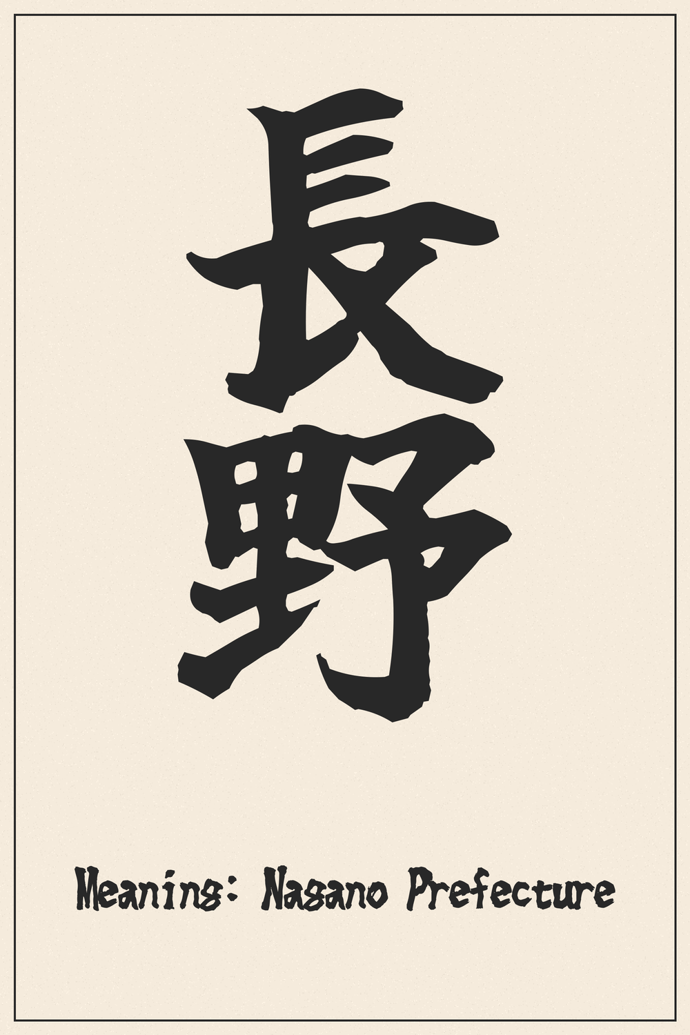 The Kanji for Nagano embodies the serene beauty and enduring spirit of one of Japan’s most celebrated mountainous regions. It represents a deep connection to nature, history, and a rich cultural landscape.