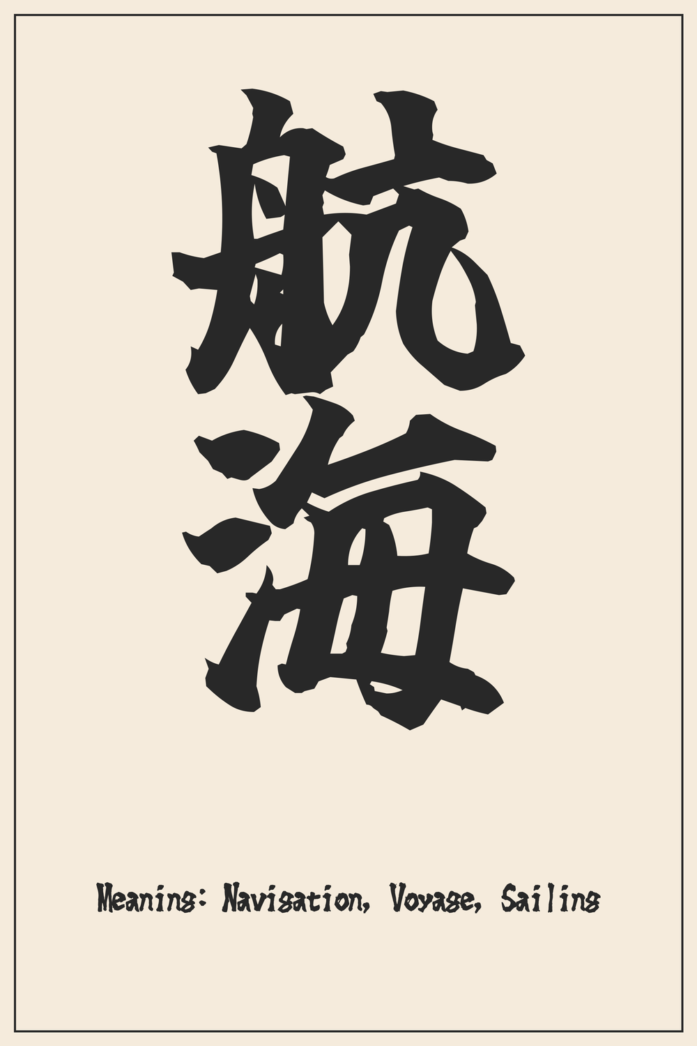 The Kanji ‘航海’ beautifully encapsulates the essence of navigation and the journey across vast waters. It represents courage, exploration, and the pursuit of destinations, symbolizing both literal seafaring and the metaphorical voyages of life.