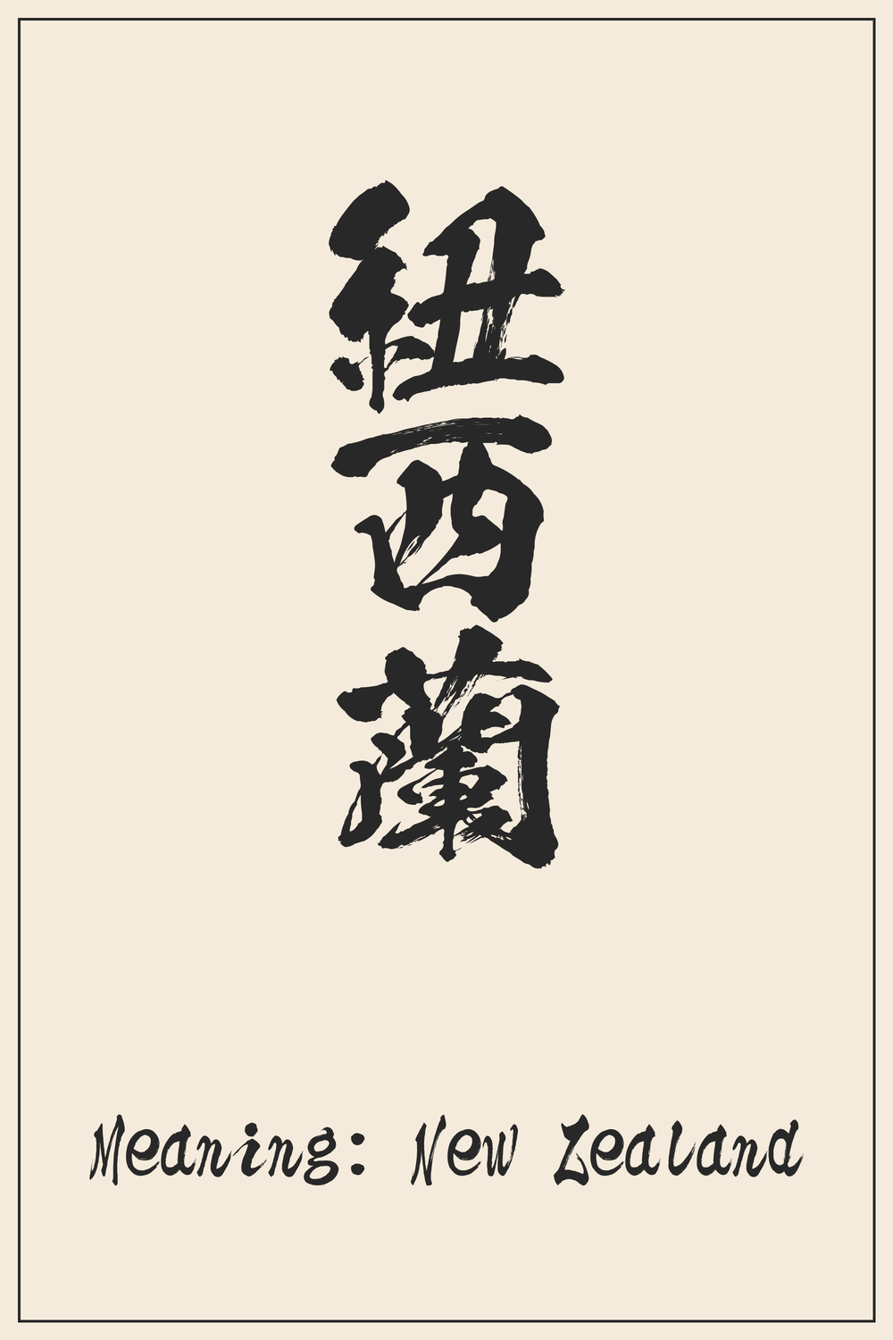 紐西蘭 (Nyuujiiran) is a fascinating example of how Japanese adapts foreign words. Rather than conveying a symbolic meaning, these characters are carefully selected purely for their phonetic values, representing the country New Zealand.