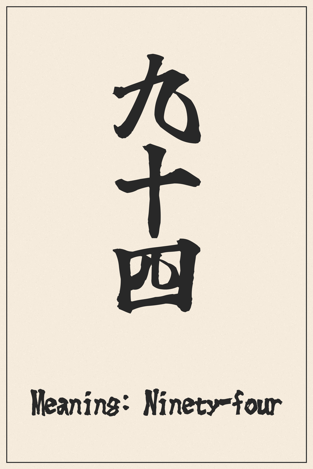 The numerical expression ‘九十四’ is composed of three distinct Kanji, each contributing to its overall meaning.