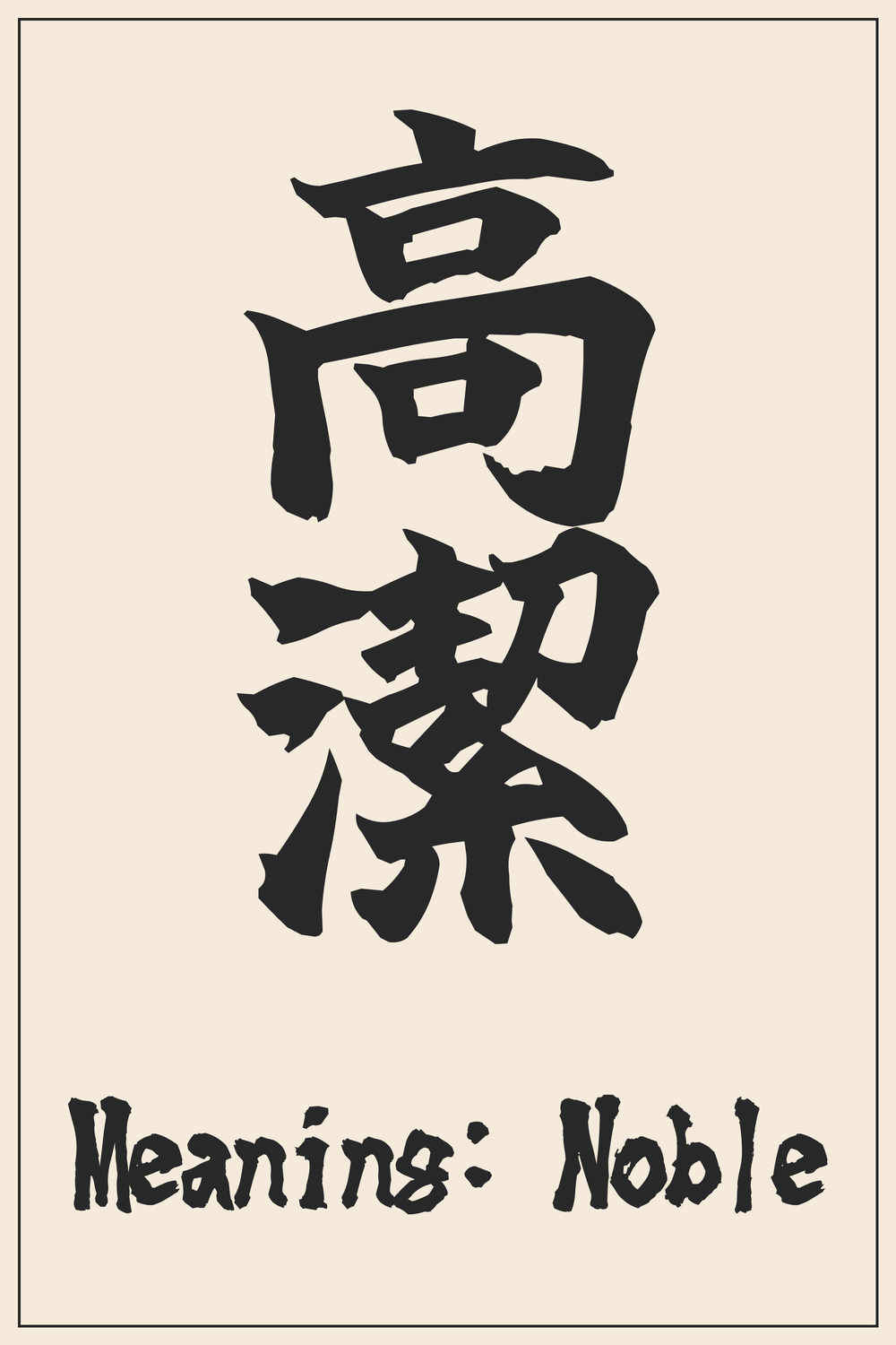 Embodying the essence of nobility, this kanji reflects a spirit that is elevated, pure, and morally admirable. It serves as a reminder to aspire to high ideals and to act with integrity in all pursuits.