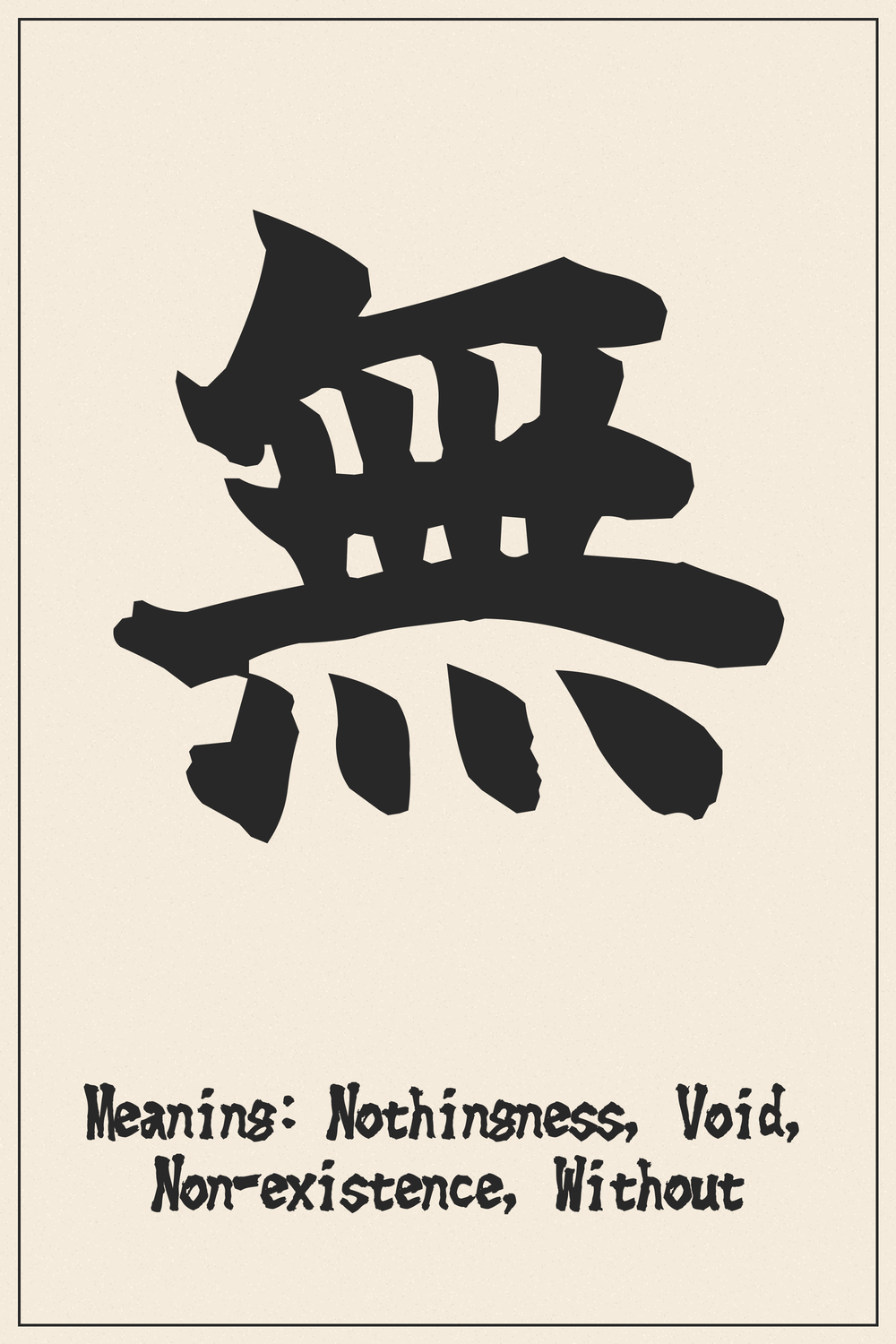 The Kanji 無 (Mu) encapsulates a universe of meaning in its elegant strokes, representing not just absence but the profound concept of the void. It’s a symbol of liberation and potential, challenging conventional understanding of existence itself.
