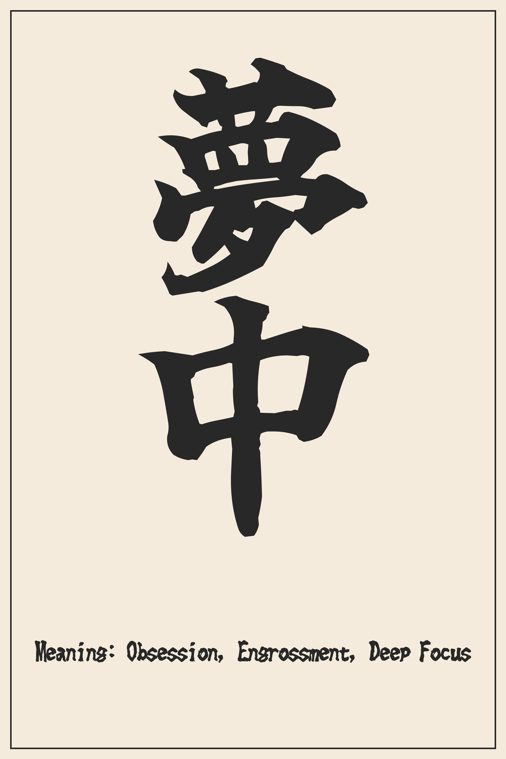 Dive into the profound state of being utterly engrossed with the Kanji 夢中. This powerful compound captures the essence of deep absorption and passion, making it a compelling choice for those dedicated to their pursuits.