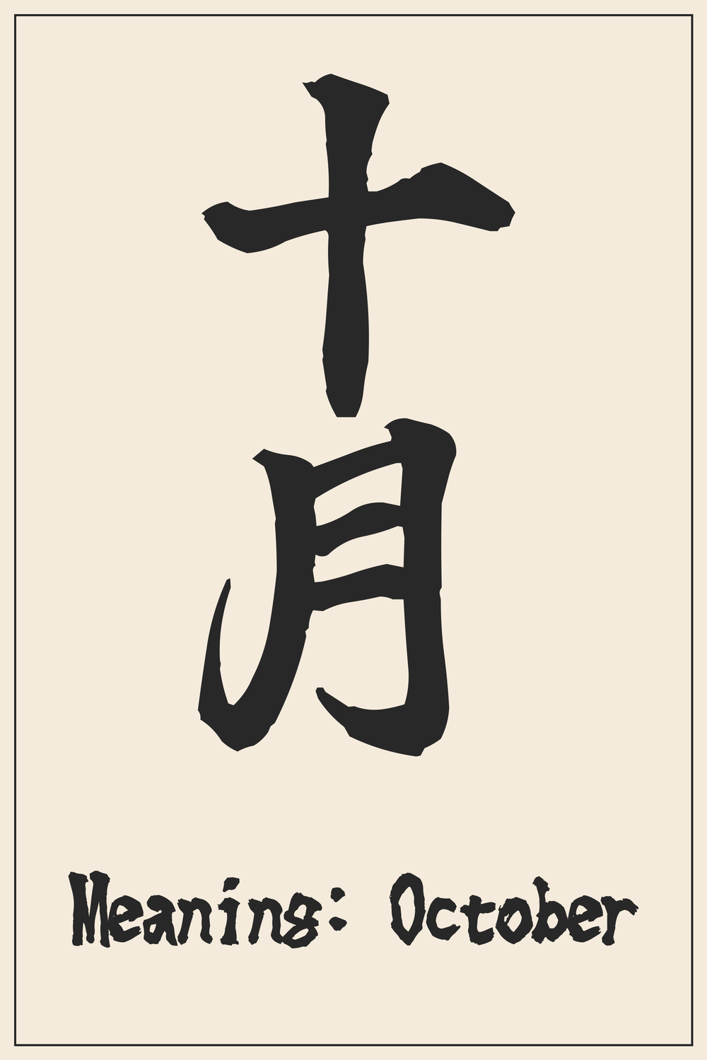 Embodying the essence of autumn’s peak, the Kanji ‘十月’ beautifully captures the significance of October. It represents a time of change, harvest, and crisp air, resonating with a deep sense of natural transition.