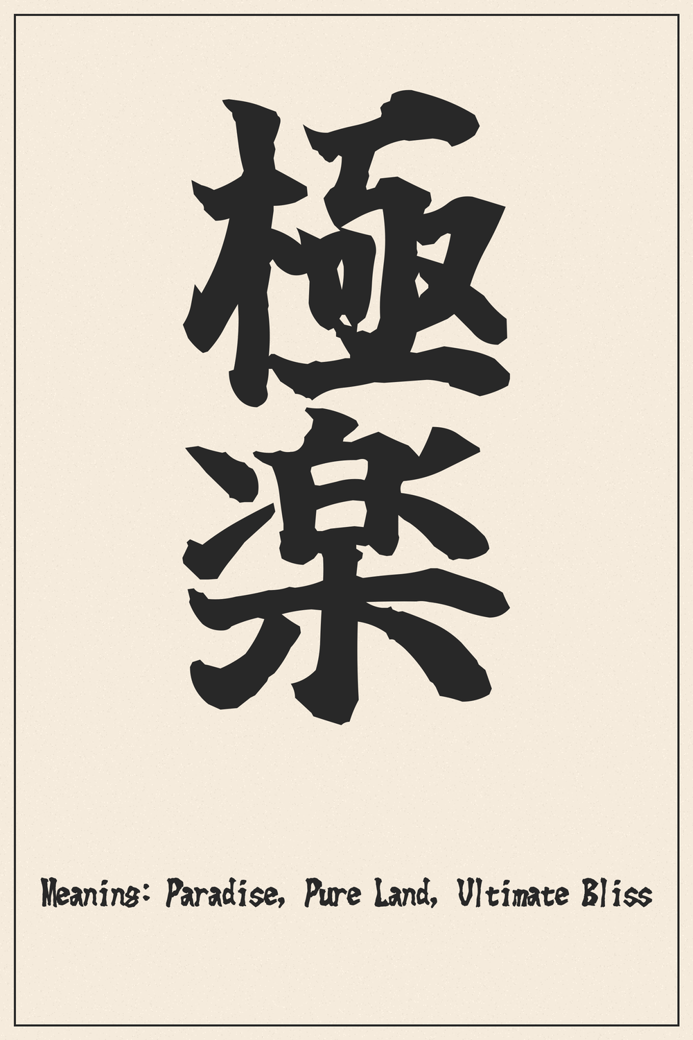 The Kanji 極楽 beautifully encapsulates the vision of a spiritual paradise, a realm of ultimate joy and tranquility. It is a powerful symbol representing not just an afterlife, but also an ideal state of mind and existence sought in this life.