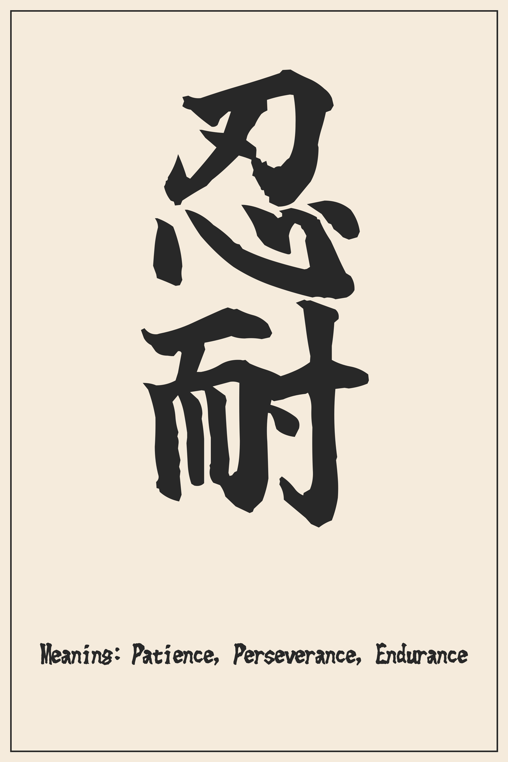 The compound kanji ๅฟ่ (Nintai) is a cornerstone of inner fortitude, representing both the ability to bear hardships and to continue steadfastly towards a goal. It embodies a proactive strength, not mere passive waiting, but a disciplined endurance.