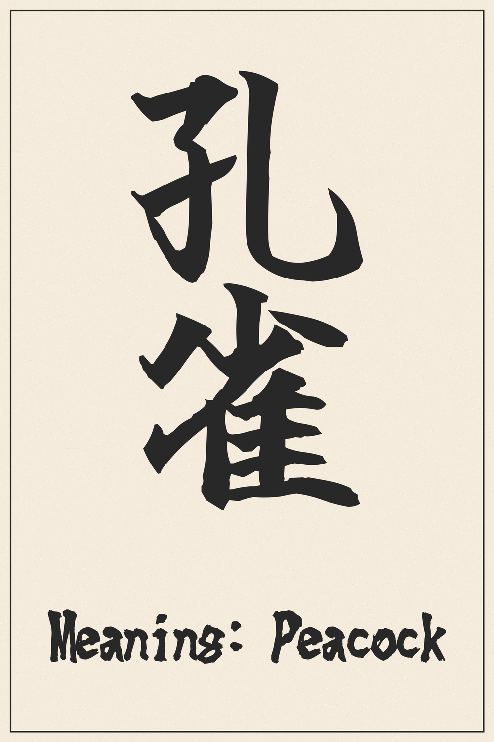 The Kanji for ‘Peacock’, 孔雀, evokes an image of magnificent beauty and grace. It represents not just an animal, but a symbol of splendor, dignity, and sometimes even immortality across various cultures.