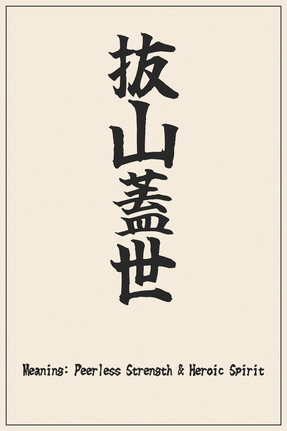抜山蓋世 is more than just a phrase; it’s a declaration of formidable strength and an unyielding spirit that commands respect. It embodies the essence of a heroic figure whose capabilities transcend ordinary limits, leaving an unforgettable impact.