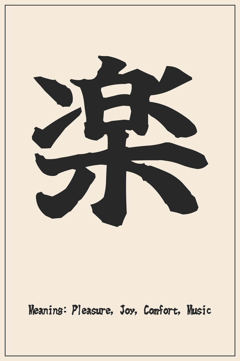 The Kanji 楽 is a beautiful representation of pleasure, joy, comfort, and the power of music. It serves as a reminder to find happiness in everyday life, embrace entertainment, and live with ease and contentment.