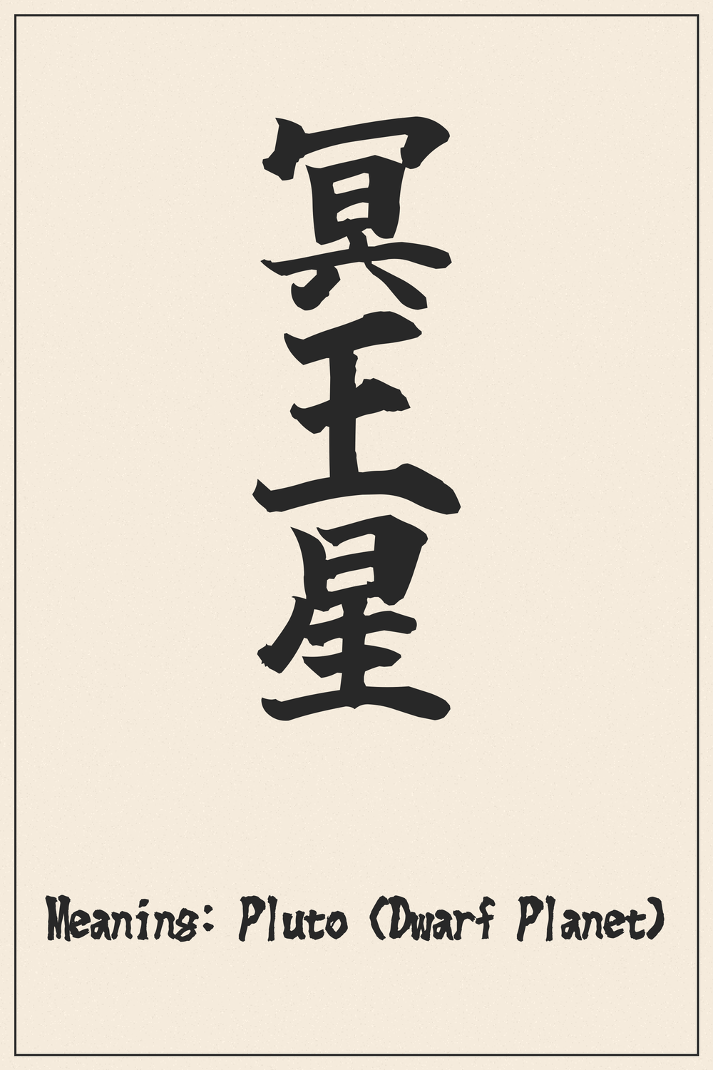 “ๅฅ็ๆ” is a profound Kanji that beautifully encapsulates the dwarf planet Pluto, not merely as a celestial body, but as a symbol steeped in mythological significance. It speaks to themes of hidden power, transformation, and the vast, mysterious realms beyond our immediate perception.