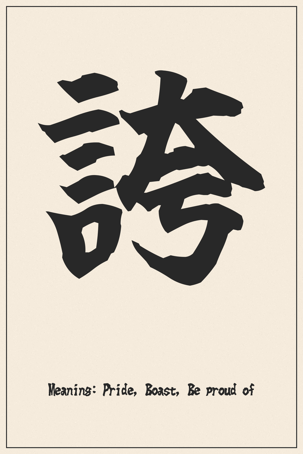The Kanji 誇 embodies the complex human emotion of pride, ranging from noble self-worth to excessive boasting. It captures a powerful aspect of the human spirit, reflecting both dignity and potential hubris.