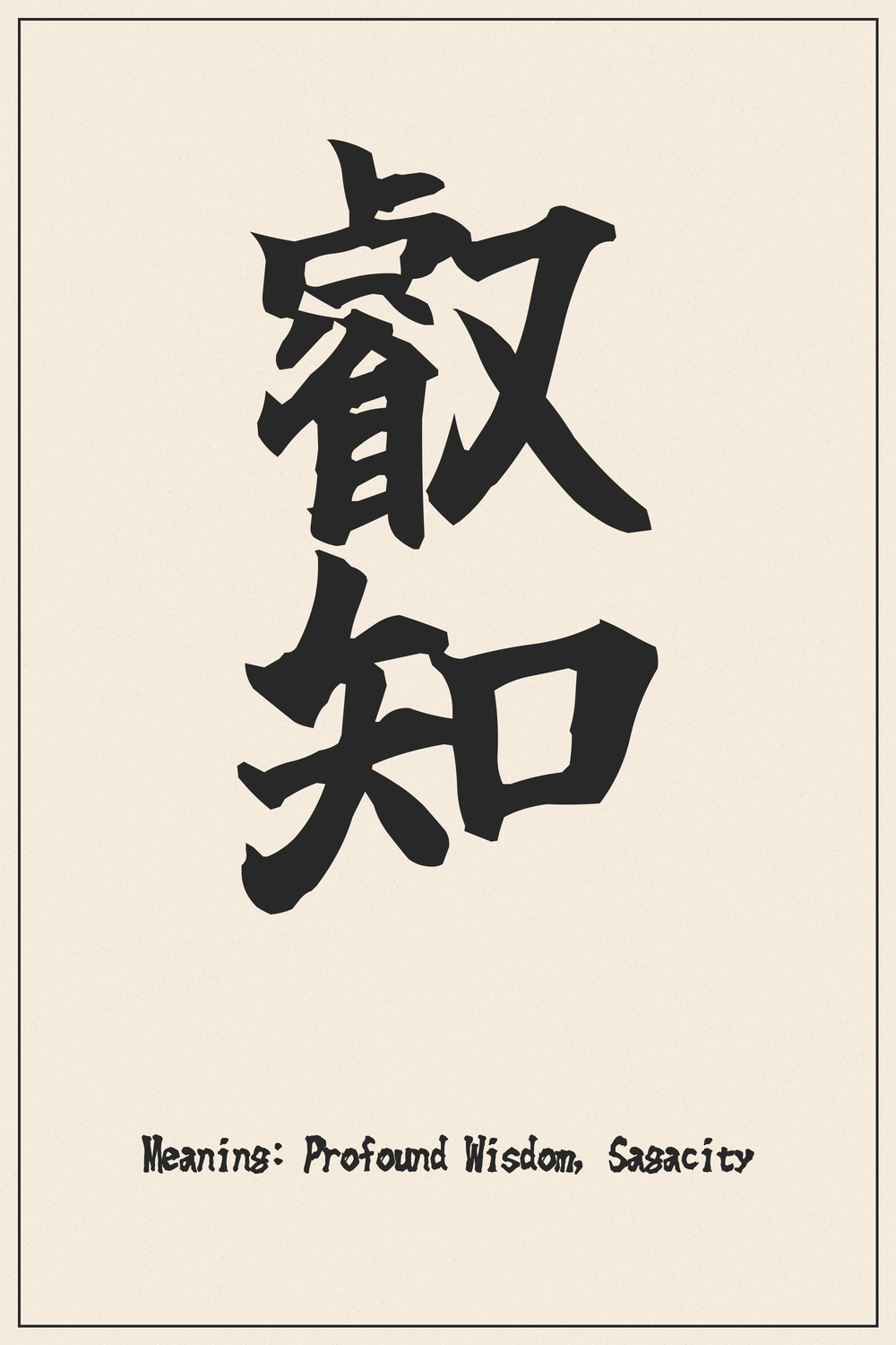 叡知 (Eichi) is a powerful symbol representing not just intellectual capacity, but a deep, sagacious understanding of the world. It embodies a wisdom that is insightful, intuitive, and profound, guiding one towards truth and clarity.