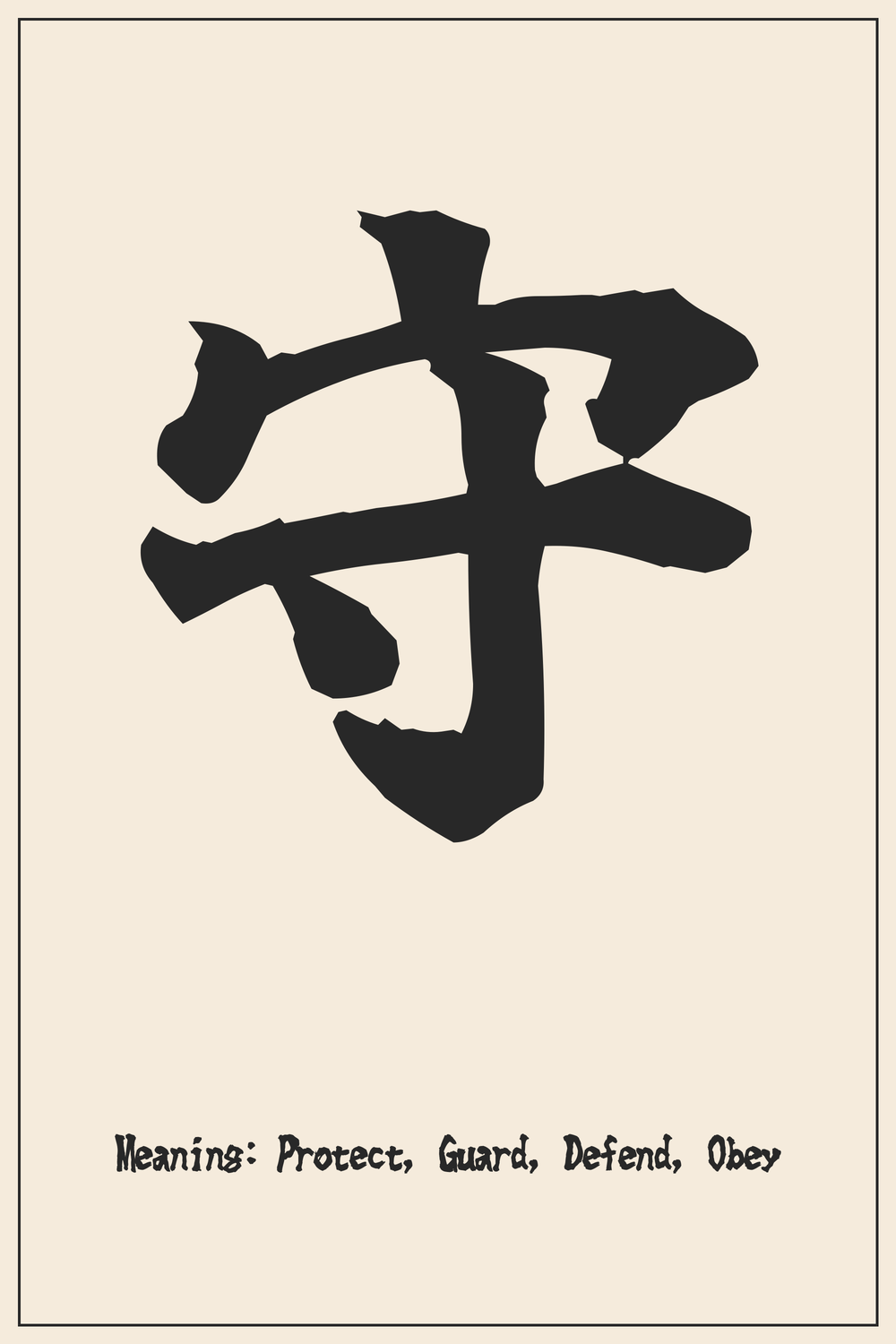 The Kanji 守 is a powerful emblem for anyone who identifies as a protector, a guardian, or someone deeply committed to their duties and beliefs. It embodies the strength and resolve required to safeguard what is important, be it individuals, principles, or traditions.