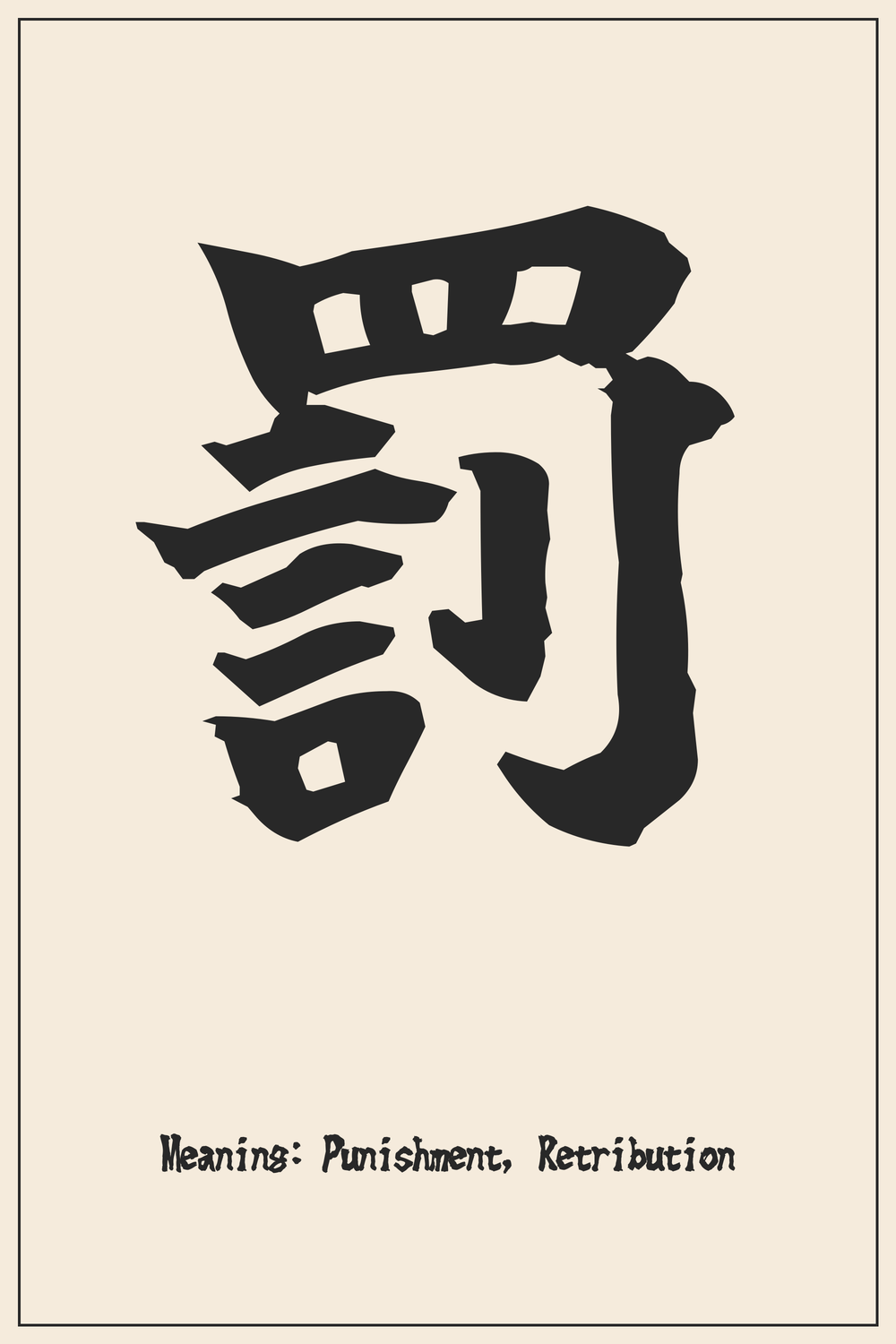 The Kanji 罰 embodies the profound concept of consequence, a powerful symbol reflecting both human justice and divine reckoning. It serves as a stark reminder that actions carry inherent weight, shaping both individual fate and societal order.