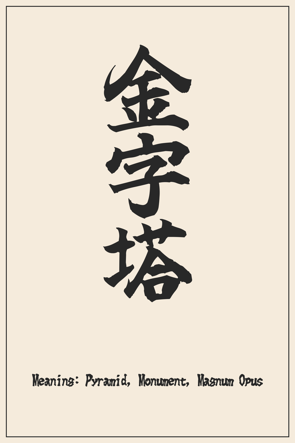 The Kanji compound 金字塔 (Kinjitou) encapsulates the essence of monumental achievement and enduring legacy. It speaks to creations that stand the test of time, inspiring awe and contemplation.