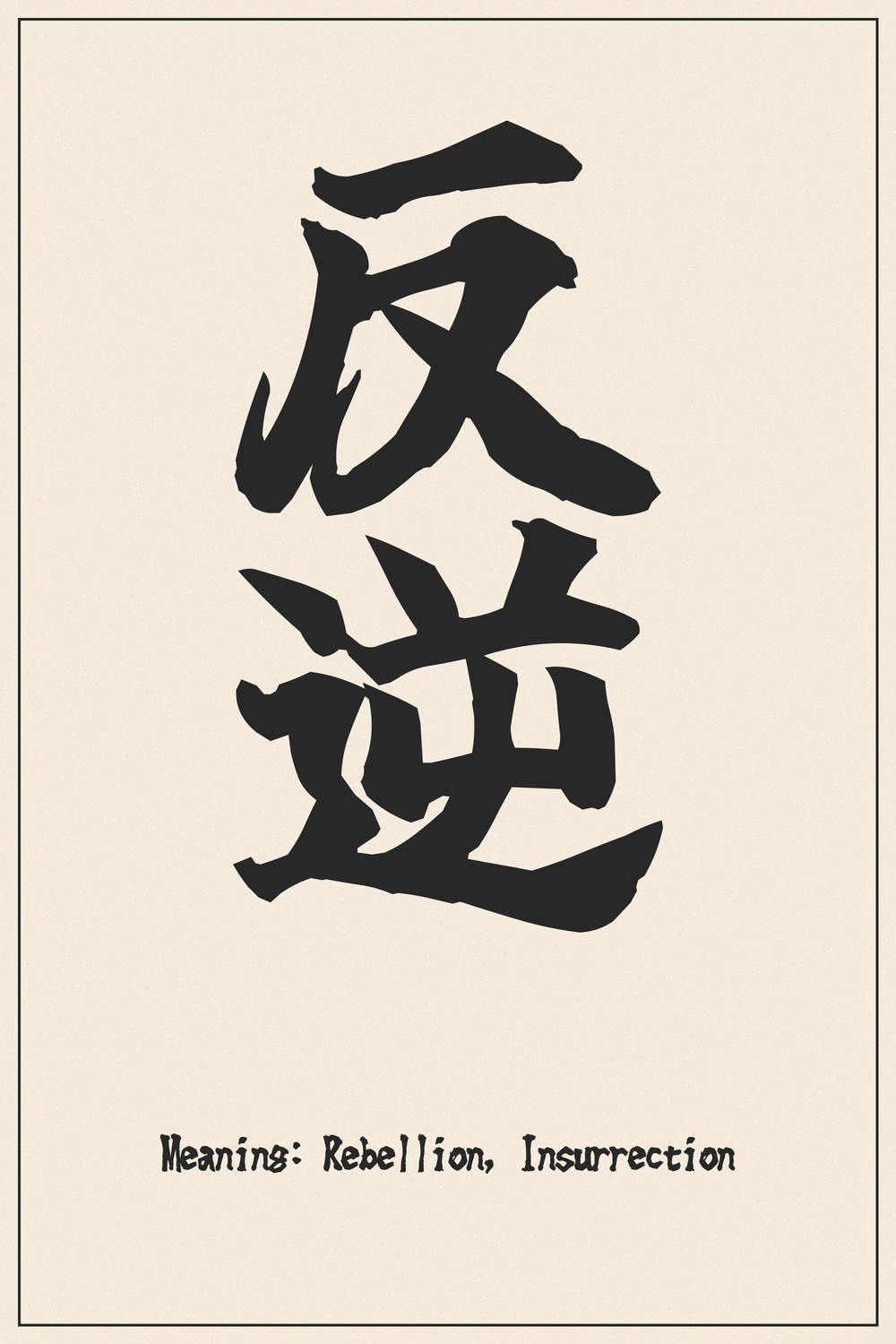 The term 反逆 (Hangyaku) is a compound formed from two powerful characters that inherently convey opposition. 反 (han) traditionally depicts something turning over or going against, symbolizing a reversal or defiance. 逆 (gyaku) further reinforces this by representing movement in the opposite direction, an act of going against the current or established order.